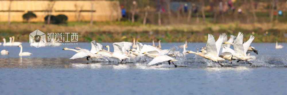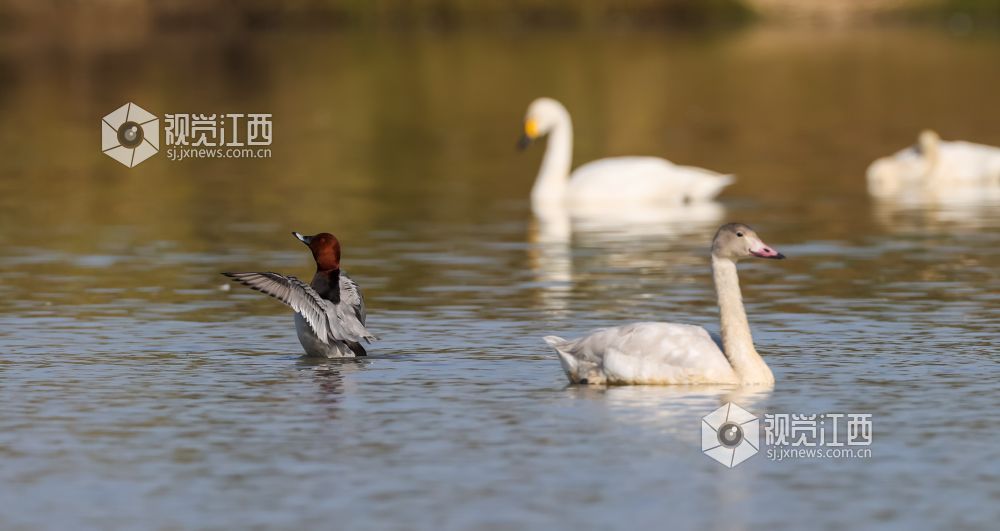 受冷空气影响,到九江市柴桑区港口街镇生机林村东湖越冬的候鸟逐渐增多。今年自10月下旬开始,首批候鸟已经飞抵东湖,总数约1000余只。 除了天鹅外,还有被列为世界极度濒危物种青头潜鸭以及红头潜鸭、绿翅鸭、白骨顶鸡、豆雁等。东湖水质良好,水生物丰富,是重要的越冬候鸟栖息地。