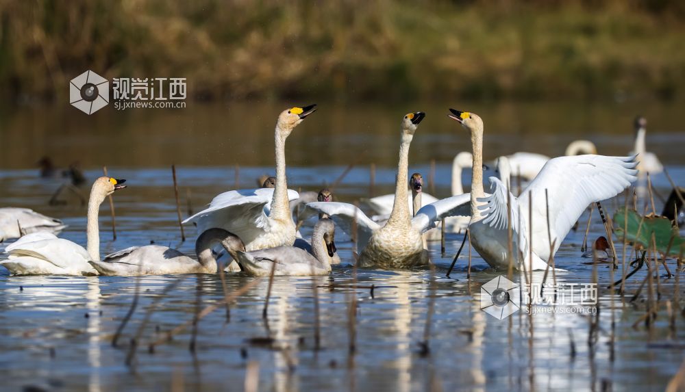 越冬候鸟飞抵江西九江东湖