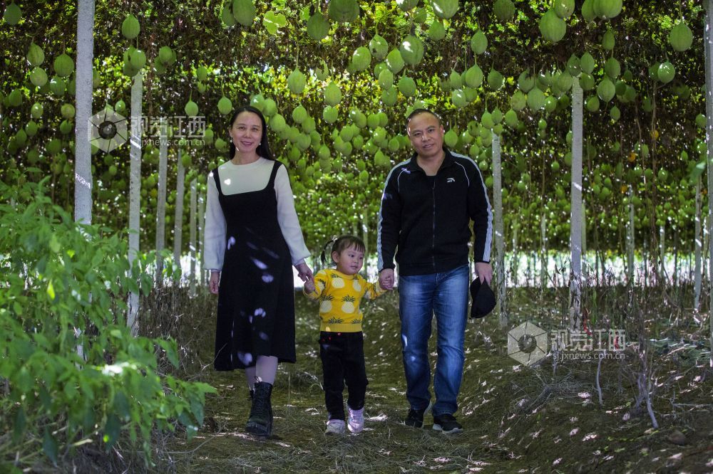 11月14日,在冬日阳光在照射下,江西省新余市渝水区罗坊镇湖头村村民种植的瓜蒌爬满了网架,成为美丽乡村的一道靓丽风景。