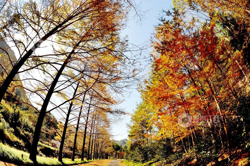 当天,江西省德兴市大茅山风景名胜区初冬景色宜人,红杉林、红枫、红叶在初冬暖暖的阳光照射下分外美丽,丛林间,摇曳的红叶、撒落的杉针、笔直的树枝,犹如第三抹绝色!一起印记在摄影师的照片里,让美丽的初冬变动更加绚丽多彩,给人以美的享受。