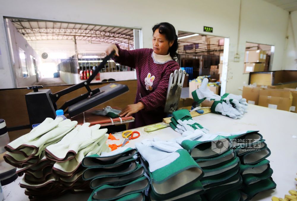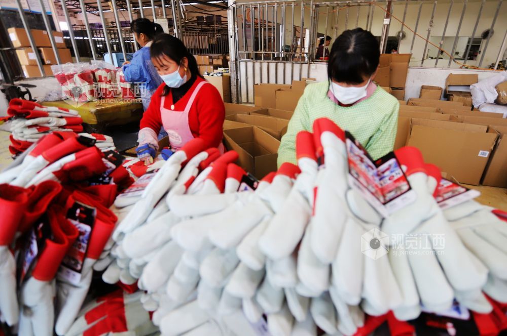 2021年11月21日,江西省吉安市安福县寮塘乡一家劳保用品企业工人正在加紧生产中。据了解,该企业吸纳当地380余名农村劳动力就业,生产的产品远销海内外市场,助力乡村产业振兴。