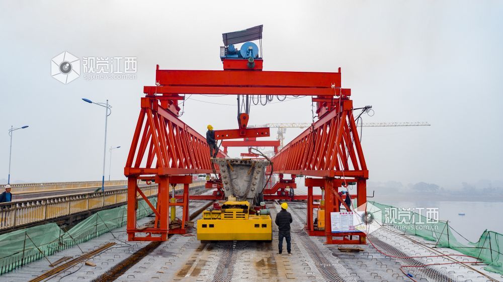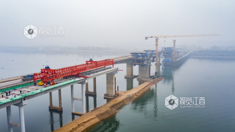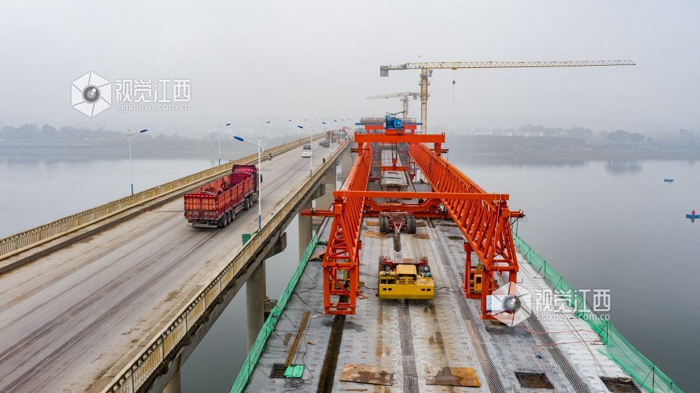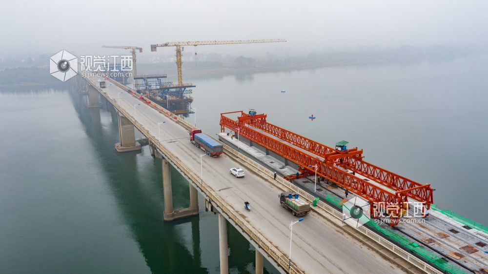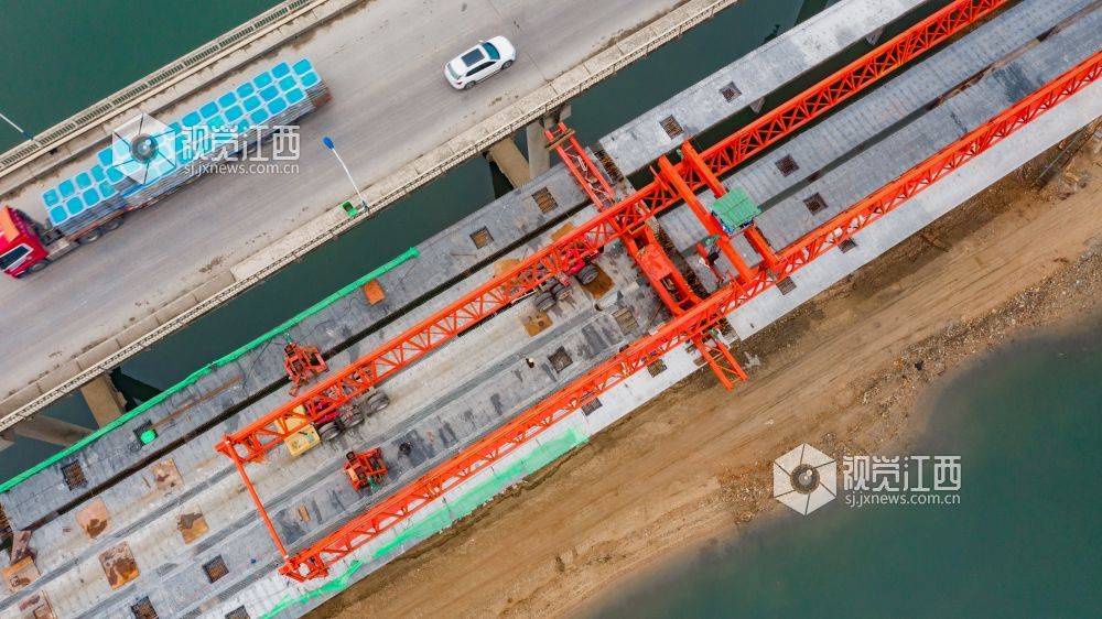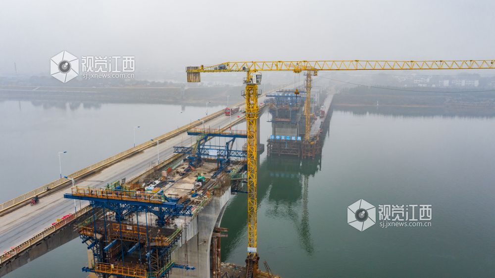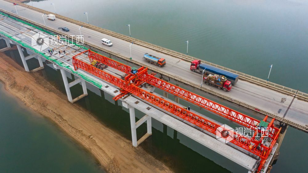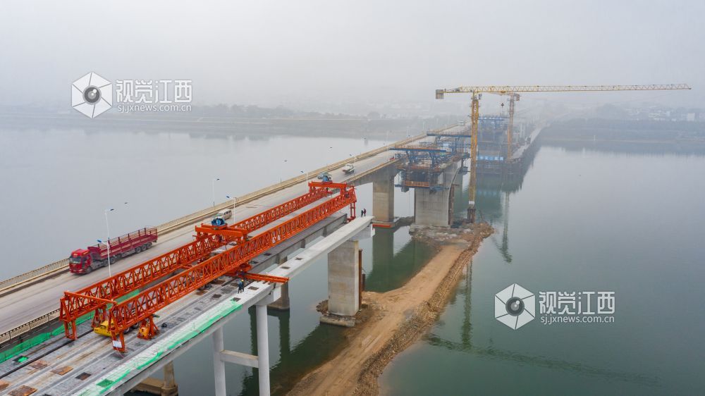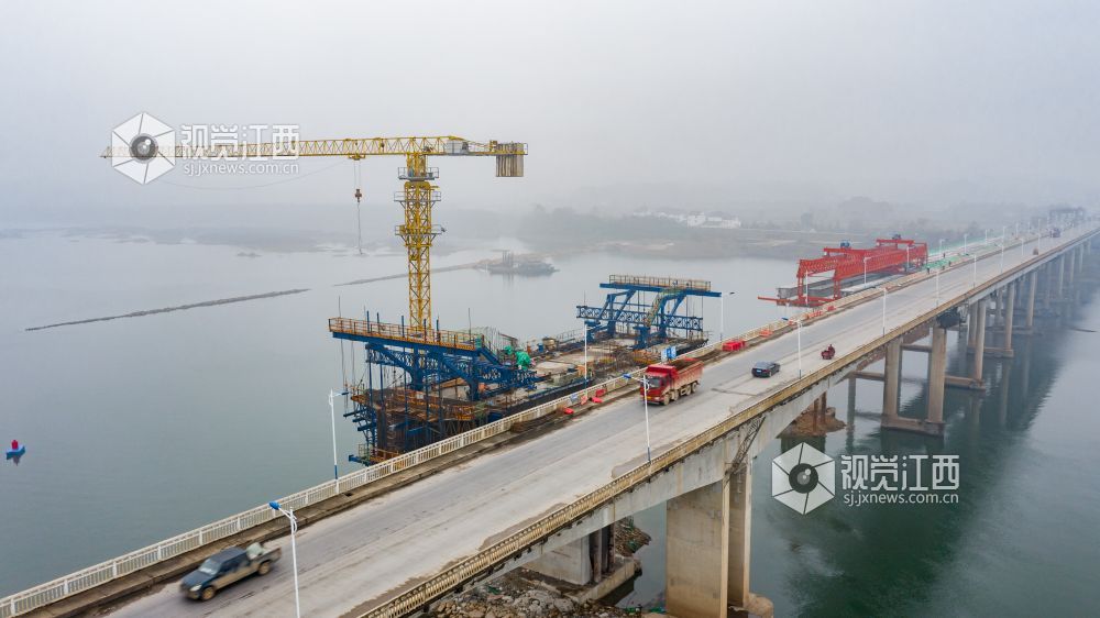 据了解,峡江县赣江大桥扩建工程路线全长1495米,目前桩基、地系梁、圆柱墩、盖梁等基本完成,施工进度50%,预计明年8月底建成通车。