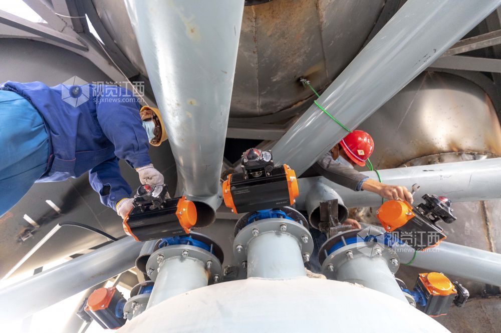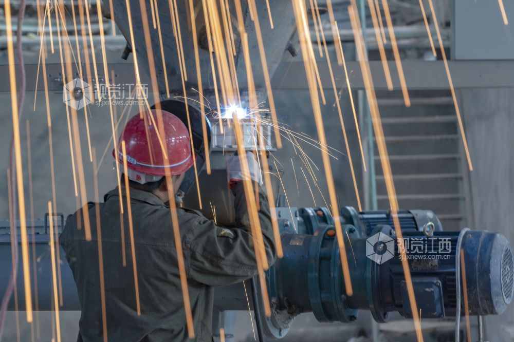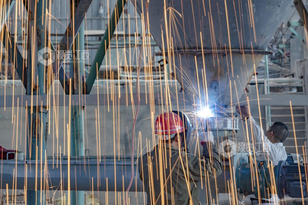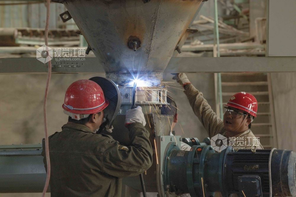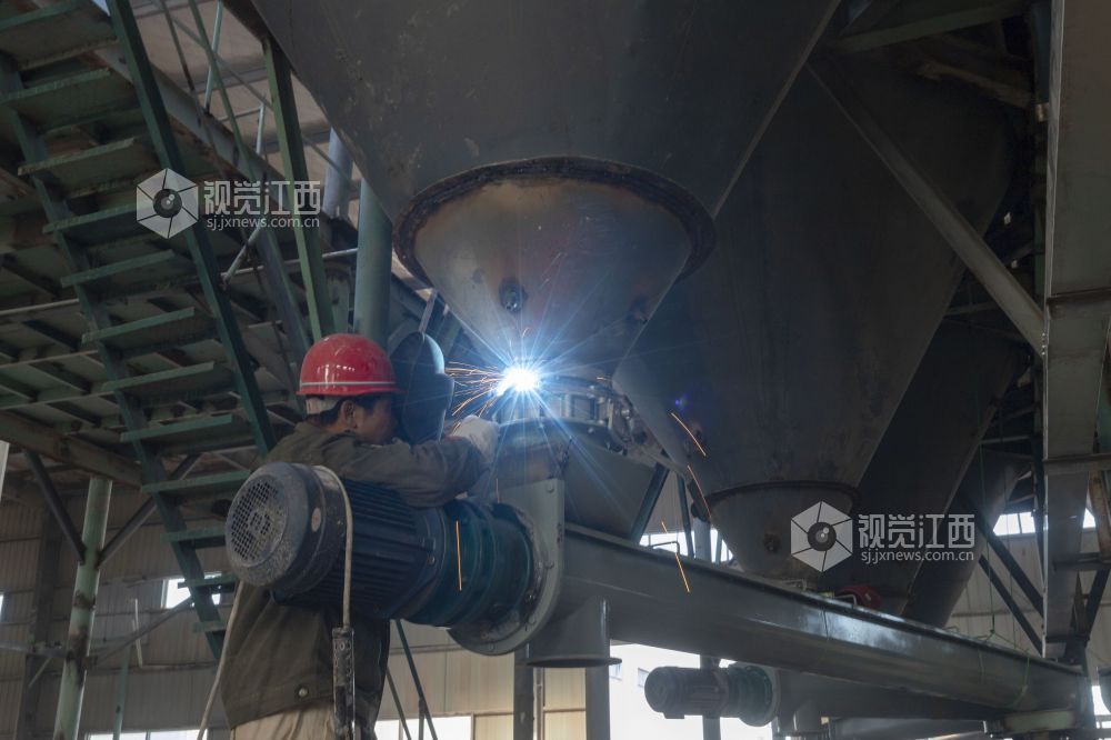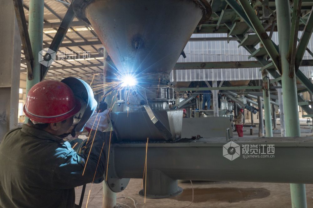 2021年11月23日,江西庐山市综合工业园内,一公司升级改造项目正在抓紧施工。通过对配料、传输系统进行自动化全封闭式改造,企业将实现无粉尘生产并降低生产能耗15%。