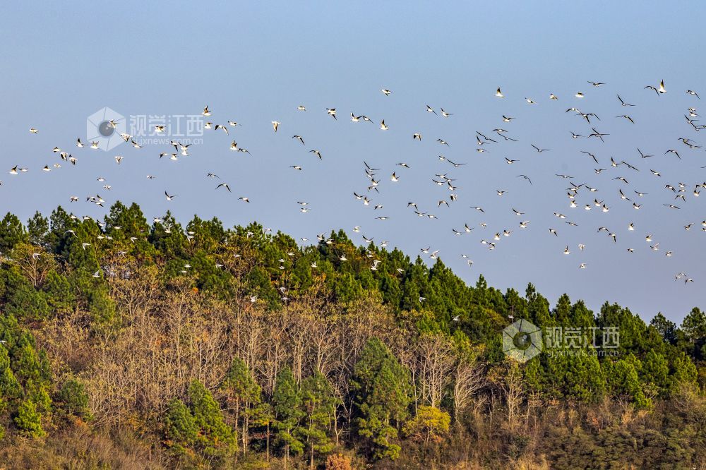 青山碧水、鱼翔浅底、百鸟争鸣,好山好水好生态。11月23日,初冬时节,江西省湖口县南北港水域迎来了成群候鸟,在此翩跹、觅食。近年来,湖口县牢固树立“生态优先,绿色发展”理念,全面落实河(湖)长制、林长制,自然生态持续改善向好,前来越冬的候鸟数量和种类逐年增加。