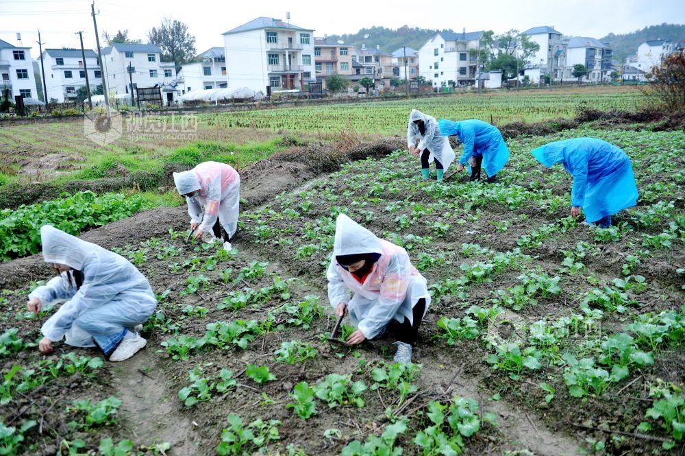 2021年11月21日,江西省德兴市新岗山镇党员义工冒雨给本镇新建村农户补种油菜。
