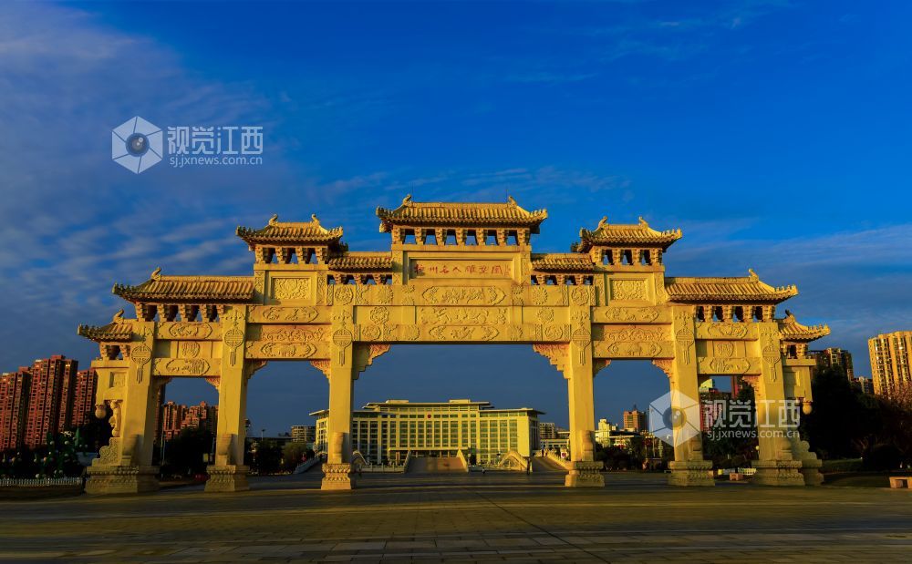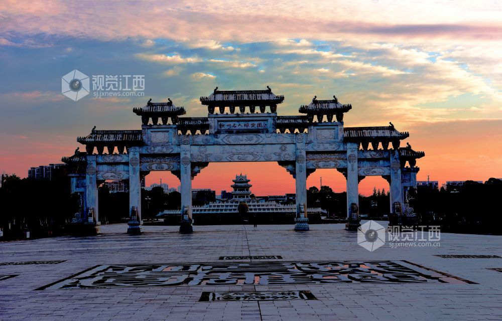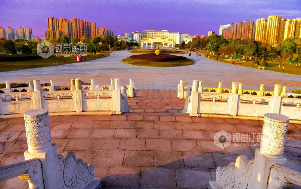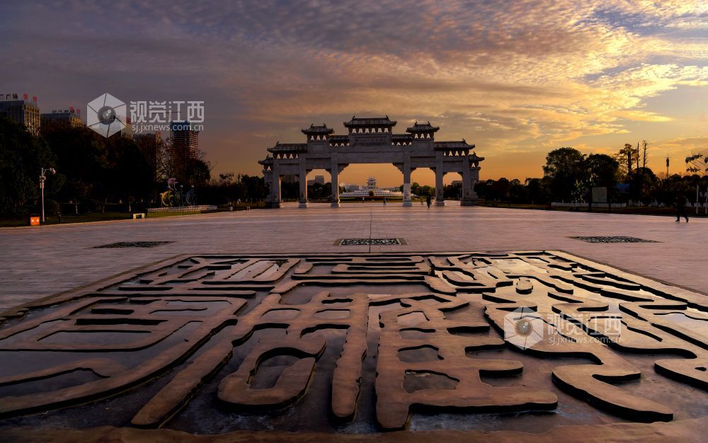 2021年11月26日,在夕阳下,江西省抚州市名人雕塑园显得格外壮观。 据了解,名人雕塑园,位于该市城南迎宾大道,占地面积为838亩,是综合性开放式的城市大型主题公园。