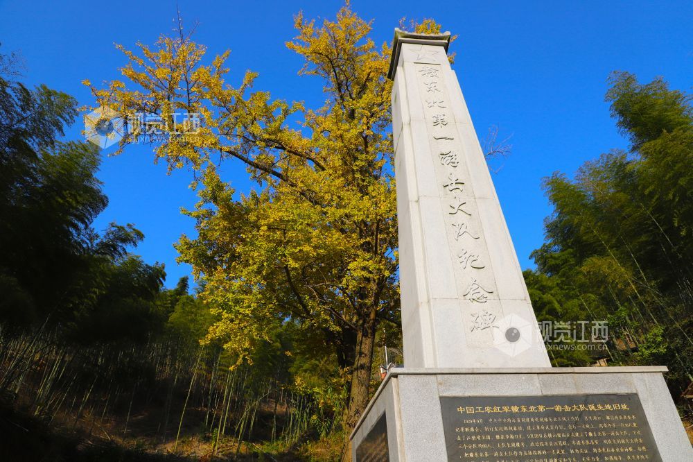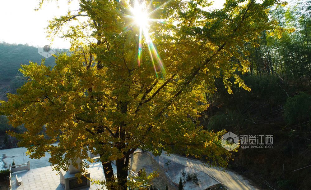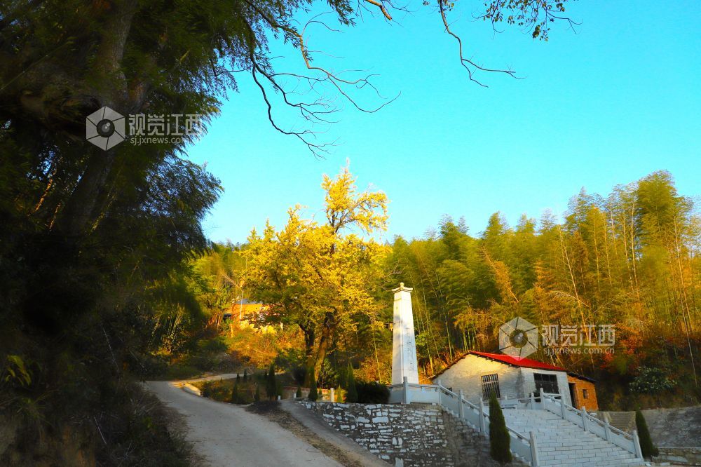 11月30日,初冬时节,江西省湖口县爱国主义教育基地赣东北第一游击大队诞生地旧址及中共湖口区委旧址的两棵古银杏,枝干苍劲挺拔,叶片金黄透亮,令人神往。