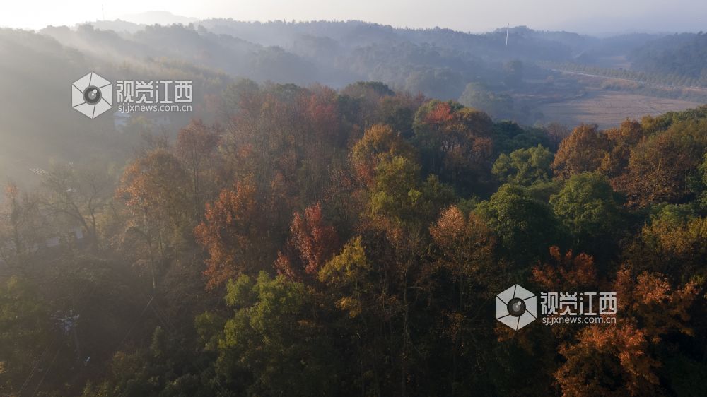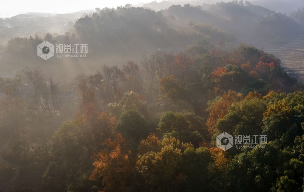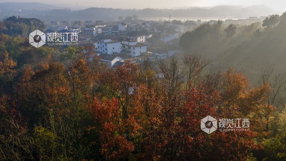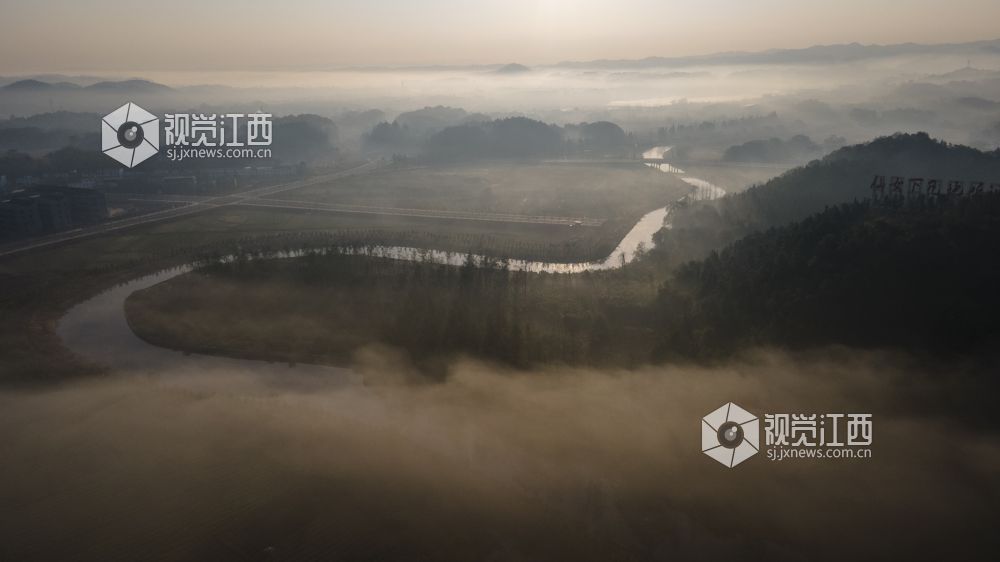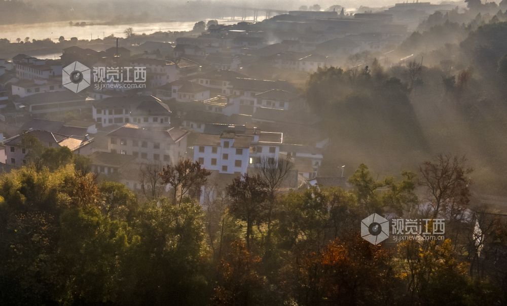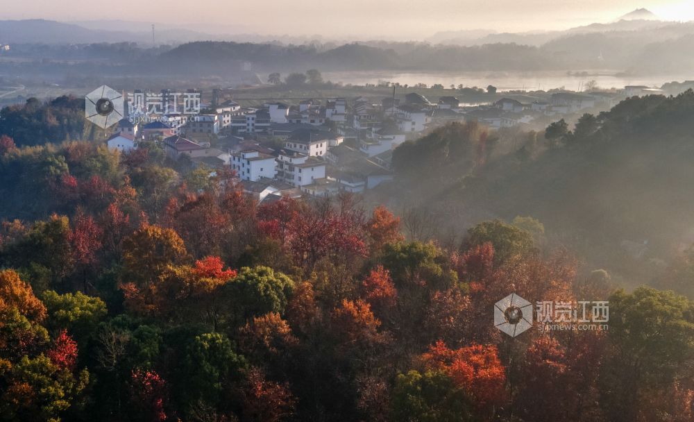 12月7日晨,新余市仙女湖区河下镇江口村旁河面浓浓的晨雾逐渐弥漫开来,浓雾笼罩下的村庄、犹如农家的袅袅炊烟、晨曦中冉冉升起的太阳、火红的枫叶点缀黑白色的村落,粉墙黛瓦的民居在晨雾中若隐若现,形成了一幅天人相应的人间仙境唯美画面。