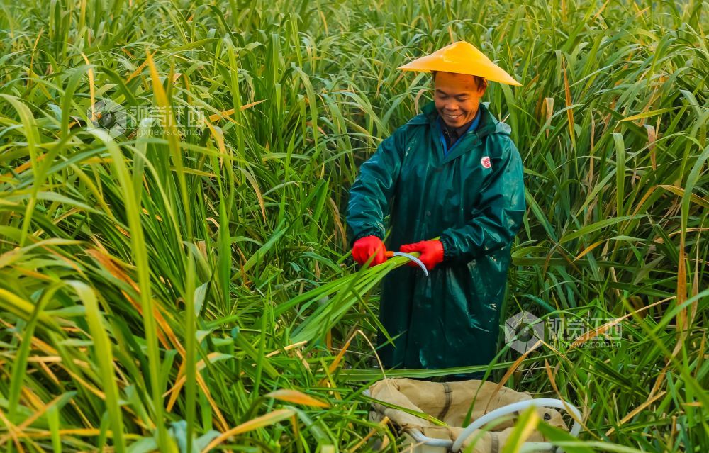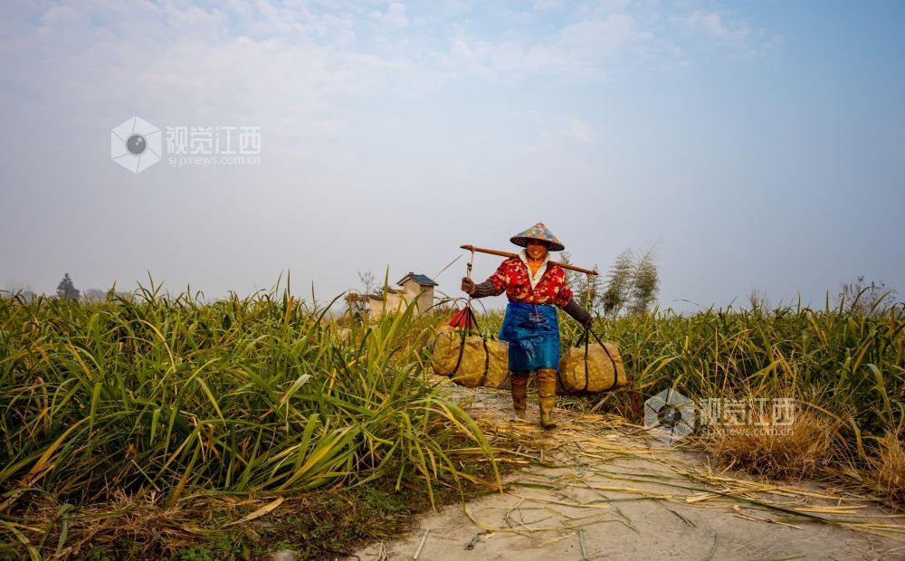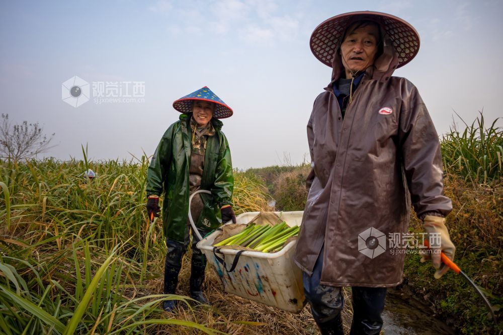 2021年12月8日,村民在瑞昌市范镇良田村采收茭白。