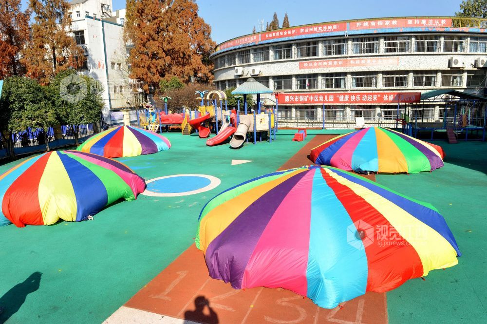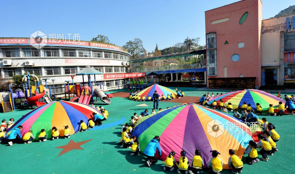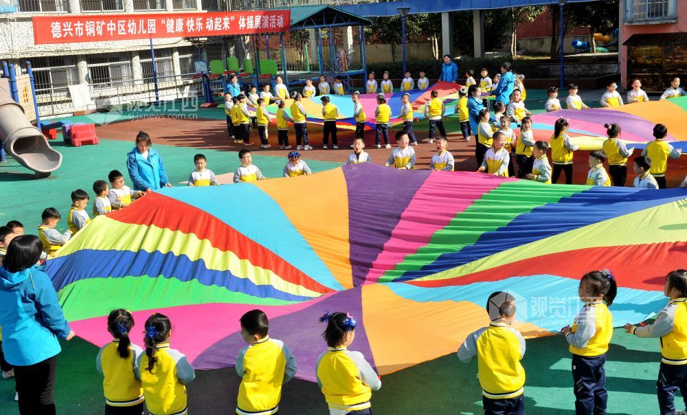 据了解,彩虹伞是小朋友户外活动常见的一种活动器具,江西省德兴市铜矿中区幼儿园专门购置了色彩斑斓彩虹伞,用于丰富孩子们的在幼儿园的文体活动内容,一把把没有骨架的彩虹伞,在小朋友的运作下,一会儿像空中慢慢下飘的降落伞、一会儿又像大草原上温暖的蒙古包、一会儿又像碧波荡漾的七彩海洋,不仅锻炼了幼儿的体能,提高了幼儿动作的协调性、灵活性,同时也展示了铜矿中区幼儿园教师和幼儿积极向上的精神风貌,深受孩子们喜欢。