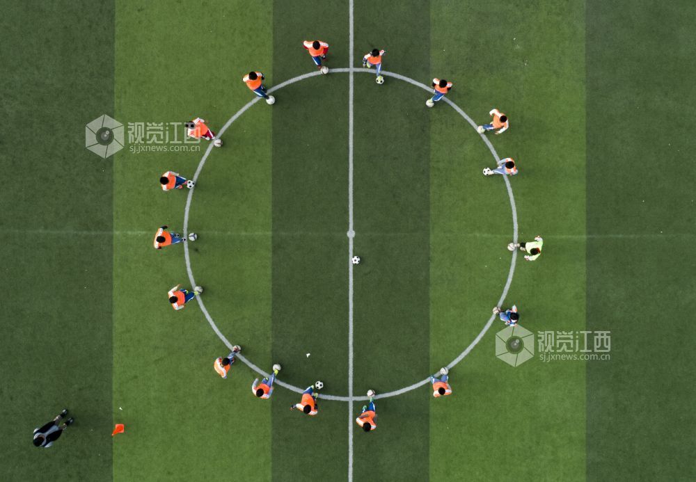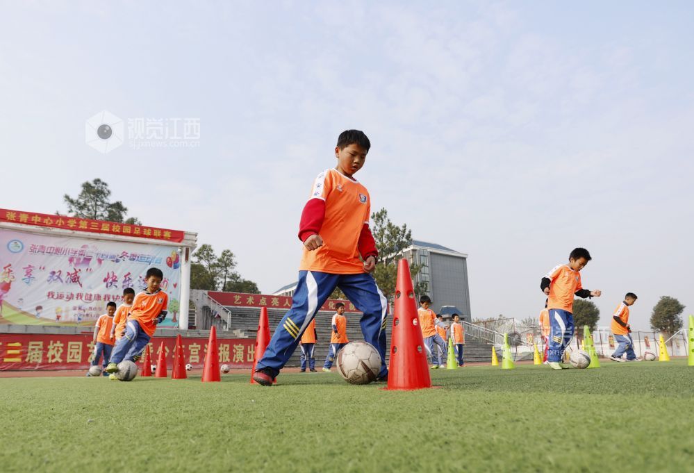 2021年12月8日,江西省九江市湖口县张青中心小学的学生正进行足球训练。湖口县张青中心小学是全国青少年校园足球特色学校,贯彻落实“双减”政策,开展校园足球联赛和校外足球赛等活动,让越来越多的学生接触并学习足球技术、享受足球乐趣、热爱足球运动。