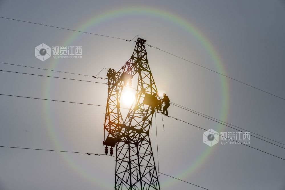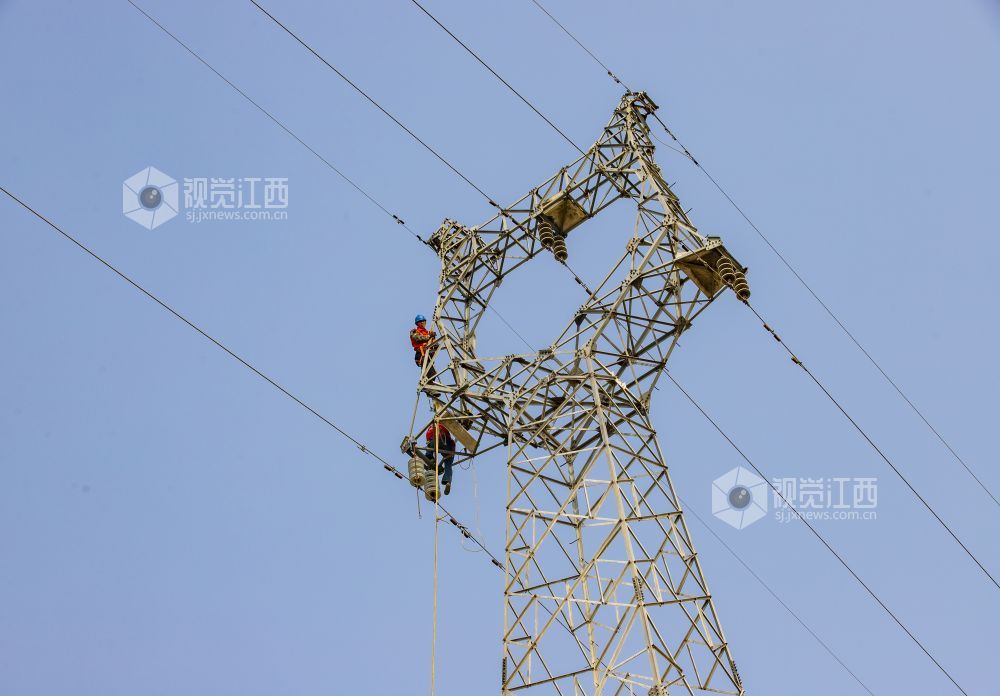 2021年12月9日,国网江西省九江市湖口县供电公司组织技术人员正在对35千伏城山至屏峰高塔线路进行检修。
