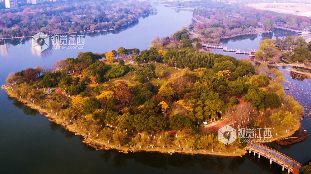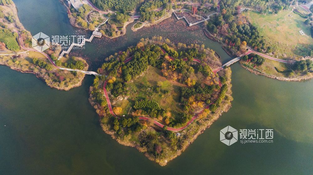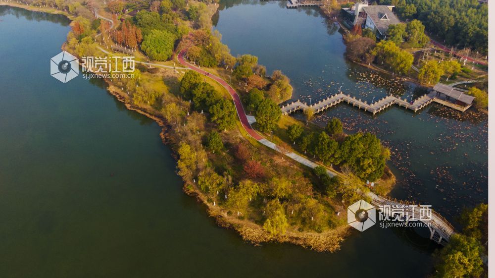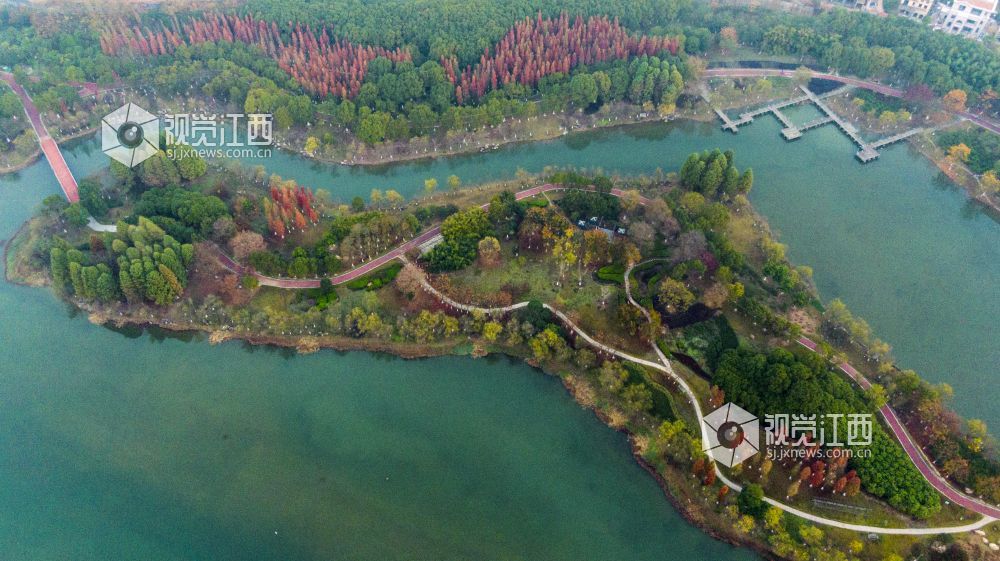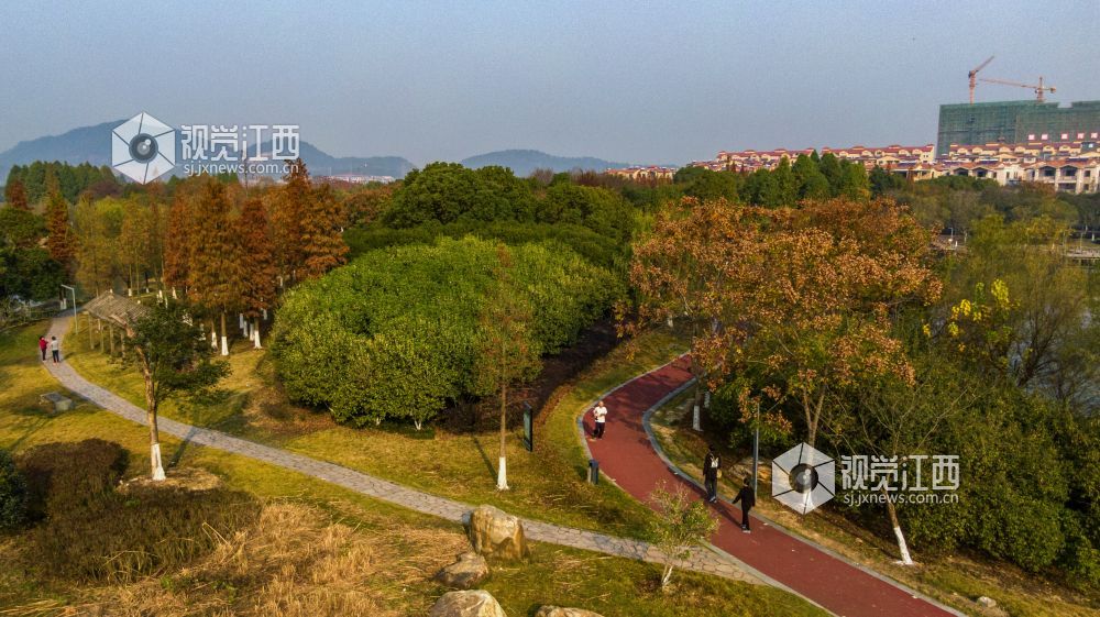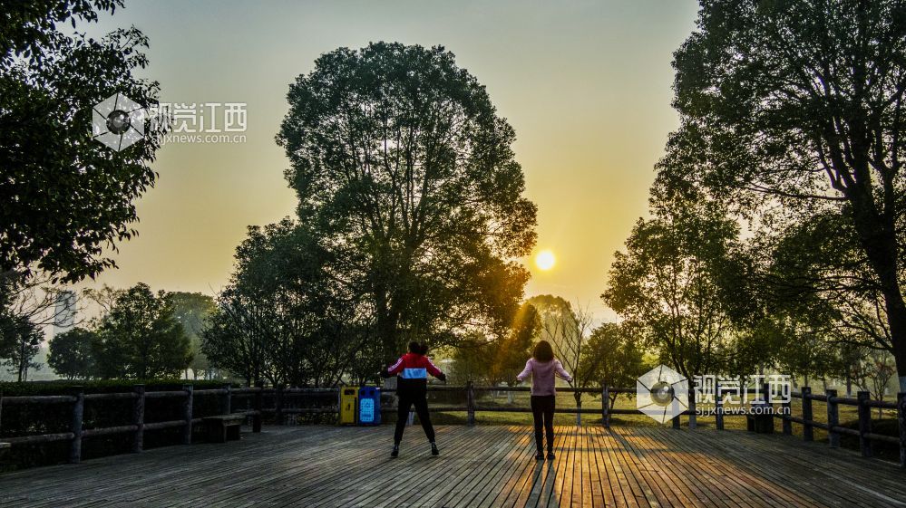2021年12月11日早上,冬天的太阳冉冉升起,在江西省新余市孔目江国家湿地公园里,早起的人们已经在湿地公园散步、运动了,在阳光的照射下湿地公园处处景色如画。