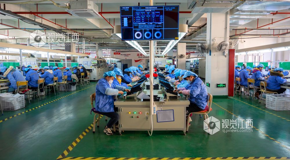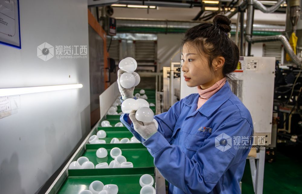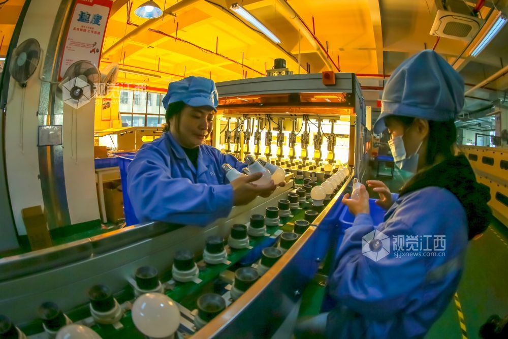 2021年12月14日,位于江西省瑞昌市经开区的一公司车间内一片繁忙景象,工人们正在抓紧生产智能LED光源和灯具。