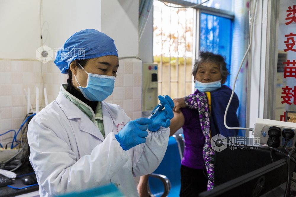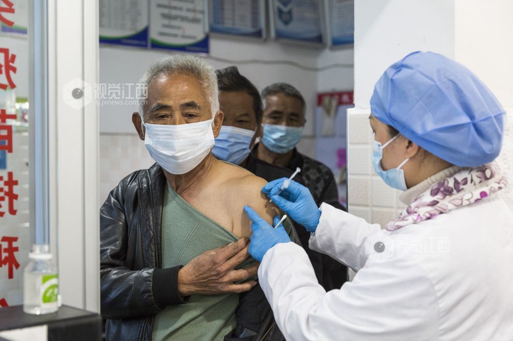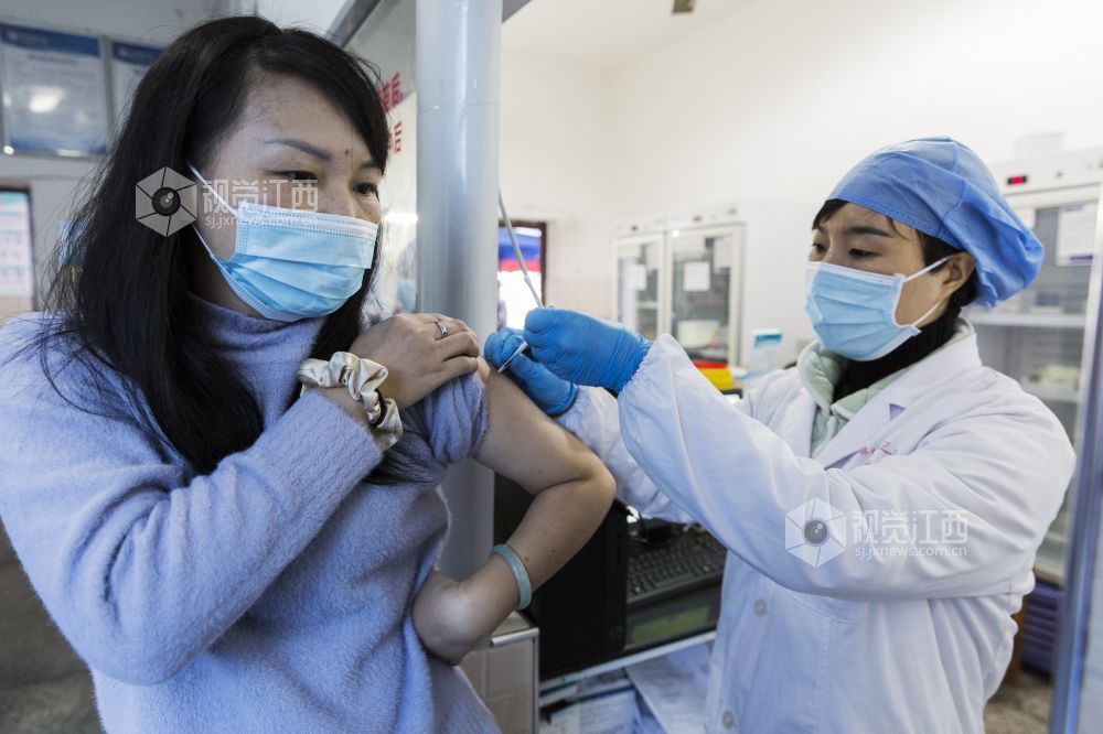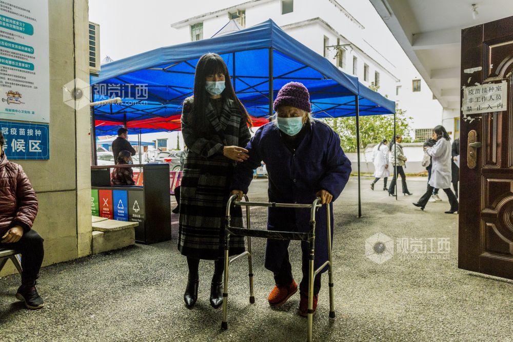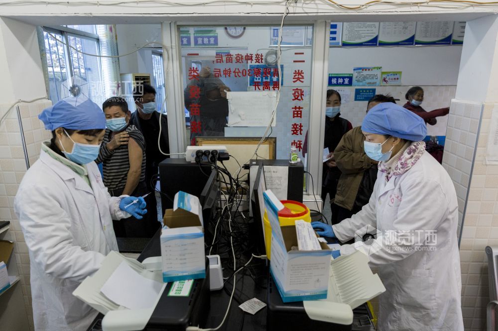 2021年12月16日,在江西省新余市仙女湖区观巢镇中心卫生院,前来接种疫苗第三针的人络绎不绝,排起了长队,疫苗接种成为了仙女湖区观巢镇干部群众的自觉行动。