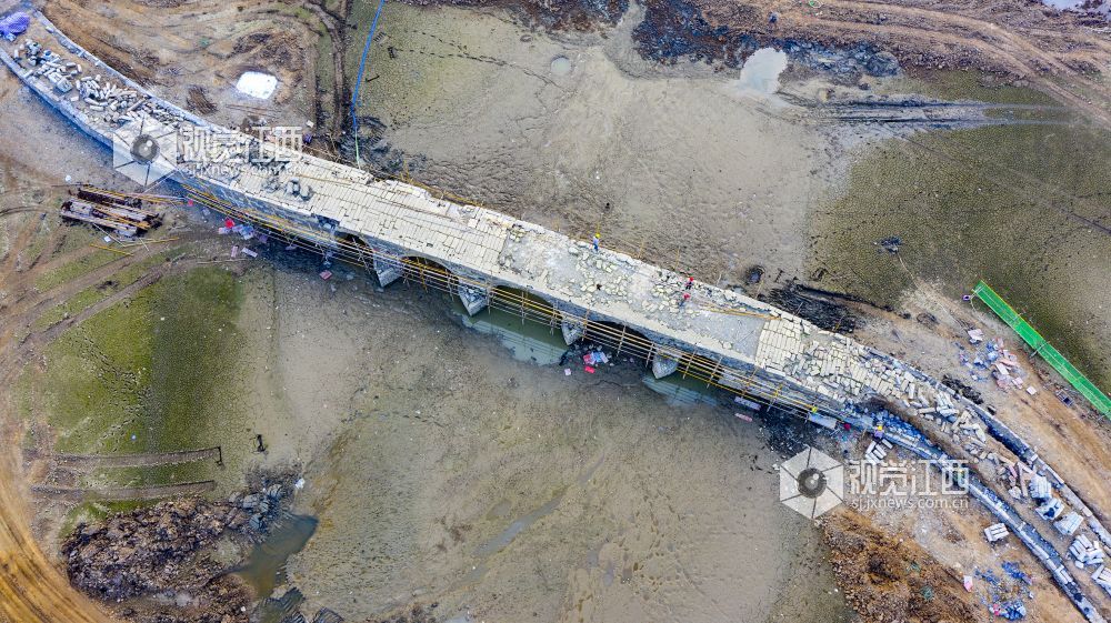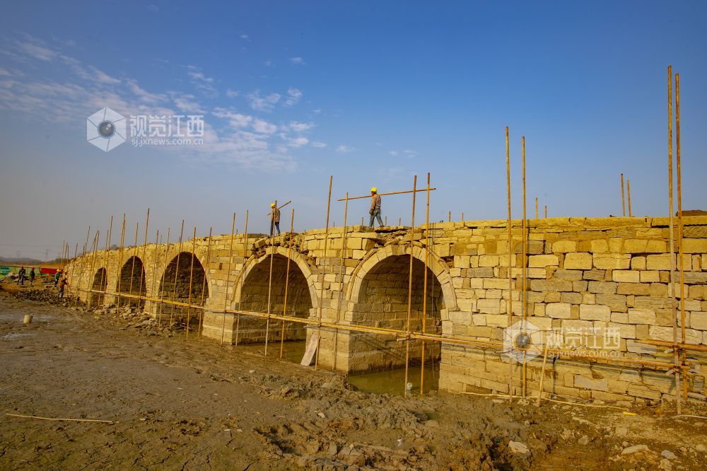 如今,该桥是湖口县现存规模最大的古代桥之一,已成为人们冬季旅游的“网红”打卡地。历经沧桑,该桥体日渐老损。湖口县高度重视,相关部门及时启动修缮抢救工作,按照“不改变文物原状、修旧如旧”的原则,稳步有序推进施工。