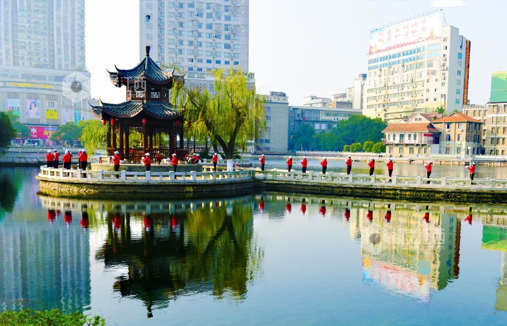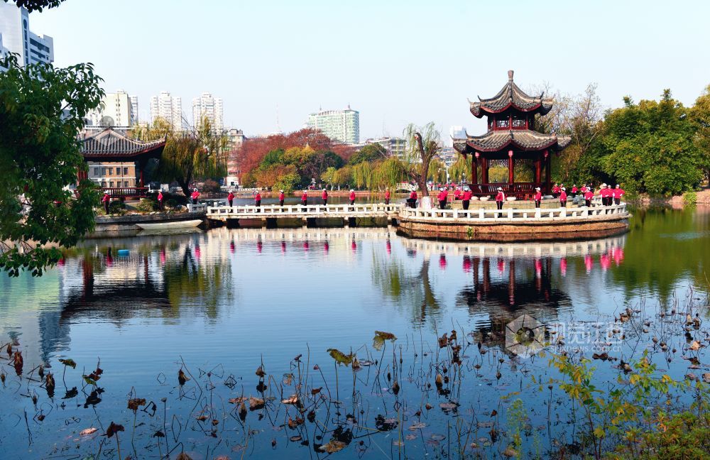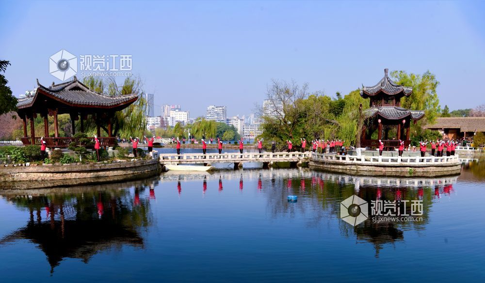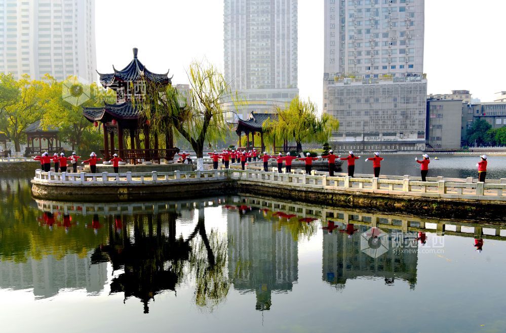 2021年12月17日,江西省南昌市八一喜洋洋操队的数十名队员,她们身着红色运动装、黑色的运动裤,头戴小白帽,在八一公园做起健美操。进入冬季,南昌市社区、公园、广场的群众文体活动开展得丰富多彩,成为一道道亮丽的风景。