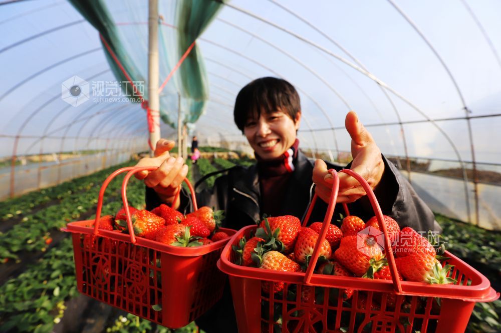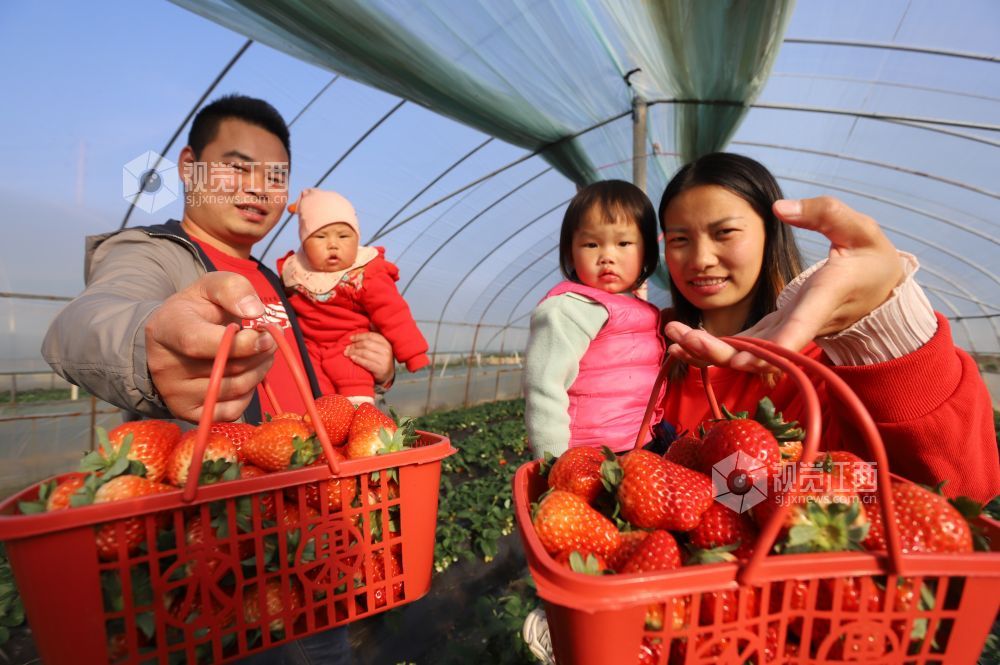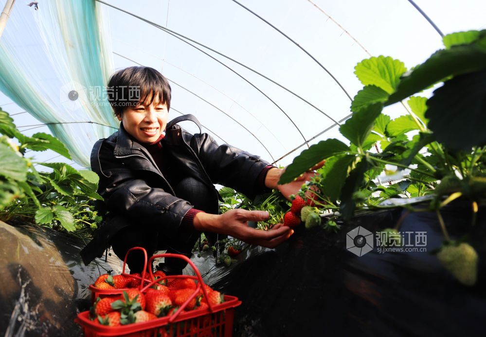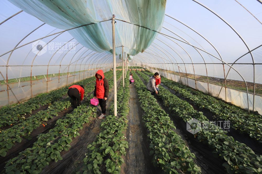 2021年12月19日,江西省吉安市安福县平都镇李家村草莓基地内市民正在采摘草莓。近年来,安福县引导城郊农民依托紧邻城区的地域特点,种植无公害大棚草莓,带动了城郊农业观光旅游采摘经济,成为当地农民增收的重要途径。