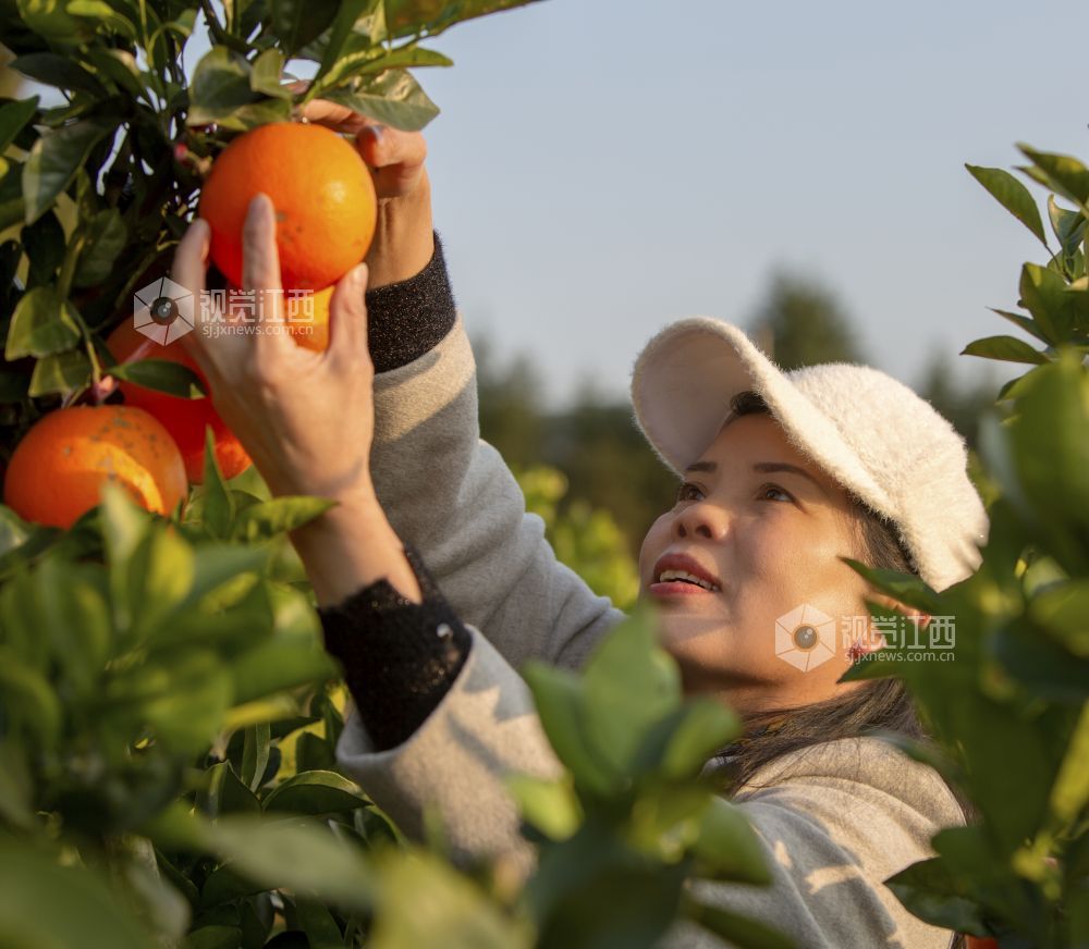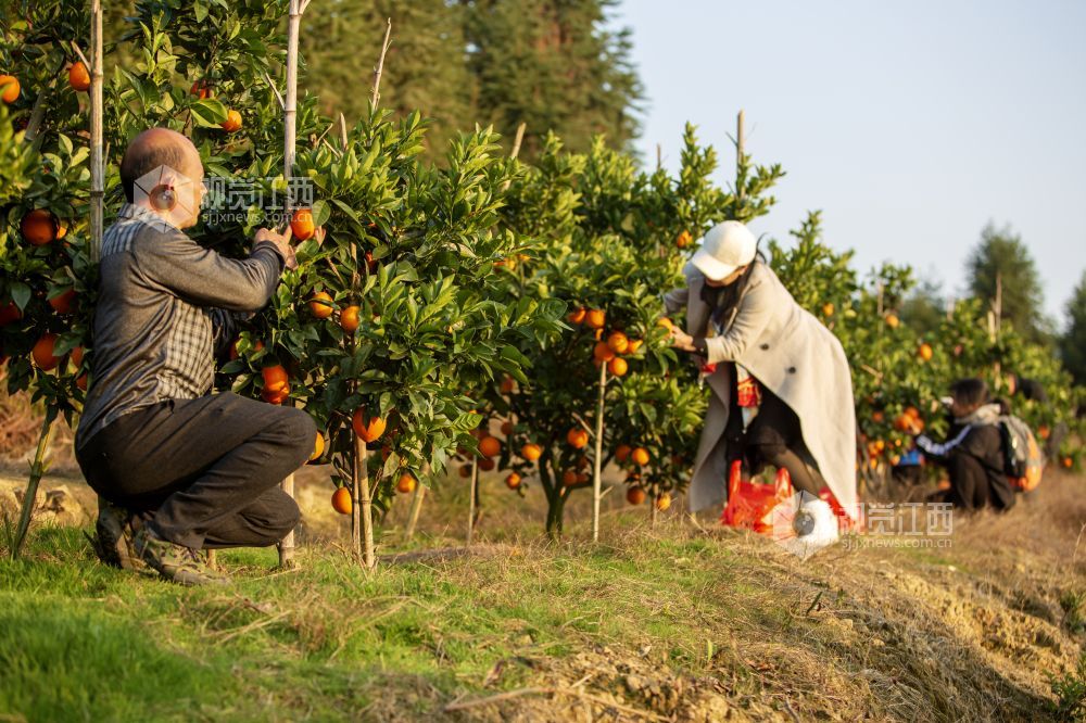 正值脐橙成熟季,江西省宜春市袁州区寨下镇横塘村山江农业综合开发有限公司富硒果业基地黄澄澄的脐橙挂满枝头,果子压弯了脐橙果树。2021年12月20日,天气晴好,成群结队的人们一边采摘脐橙,一边迫不及待地品尝着刚刚从树上采摘下来的新鲜脐橙,享受着丰收的喜悦,体验着采摘的乐趣。