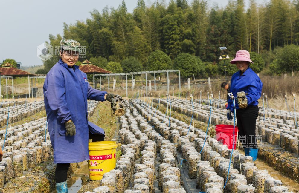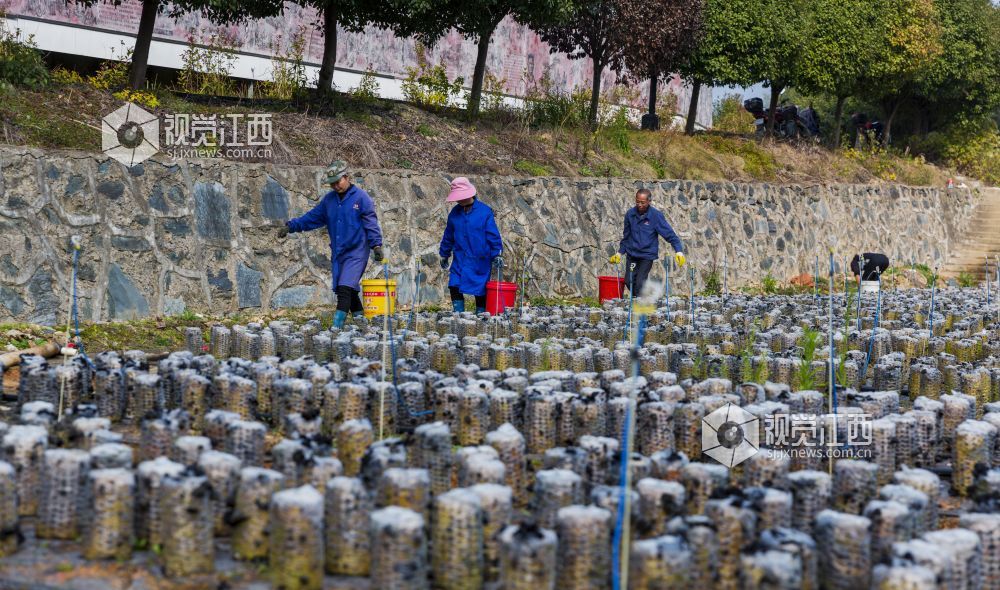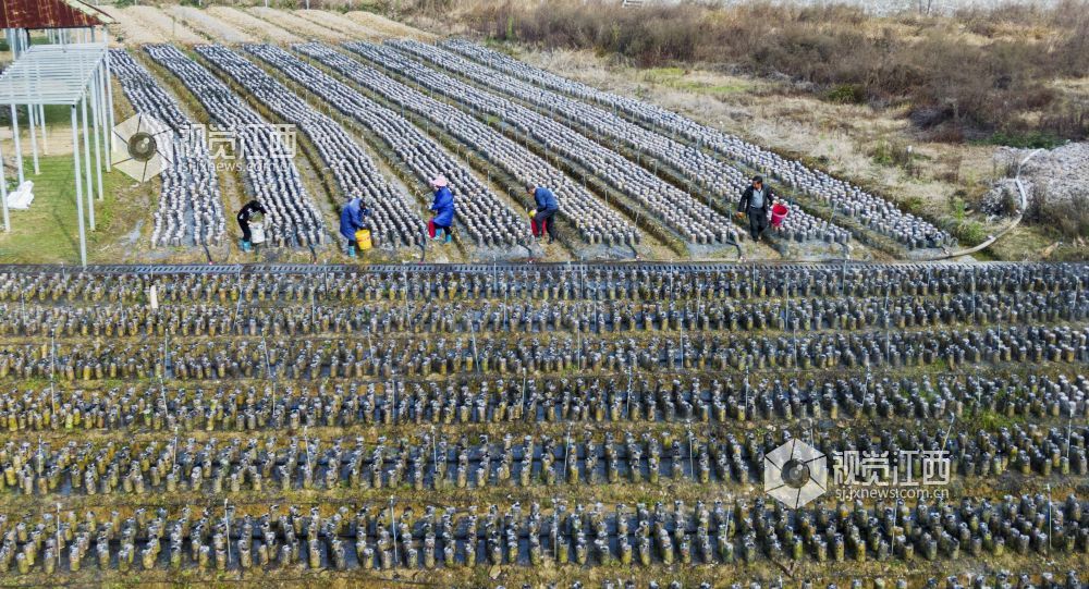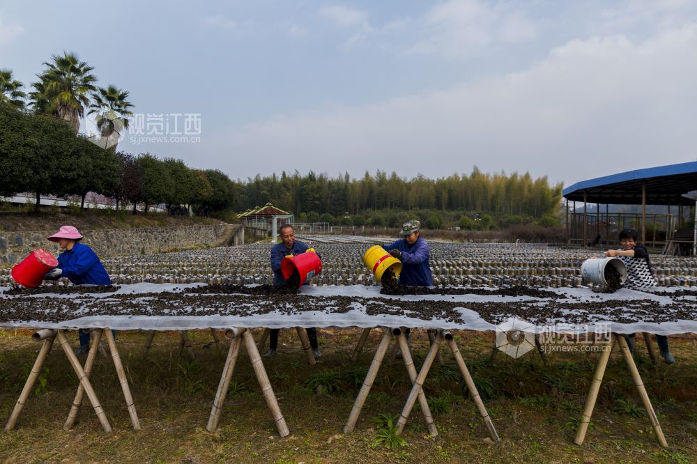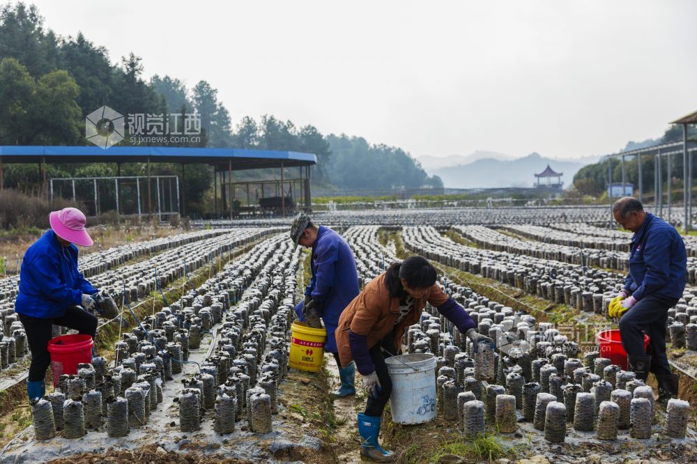 2021年12月23日,位于江西省新余市仙女湖区九龙乡后元村的黑木耳基地,村民们忙着采收、搬运、晾晒黑木耳,一派繁忙景象。