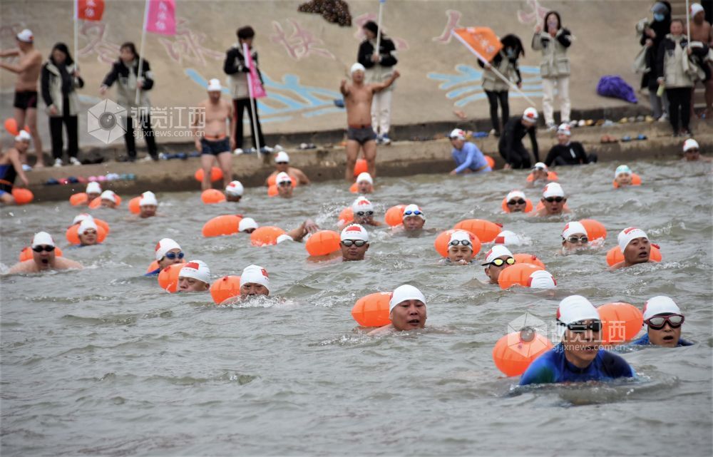 2021年12月26日,江西省鄱阳县冬季全民健身系列活动在该县冬泳基地拉开序幕。来自全省各地冬泳爱好者一同畅游美丽的饶河。