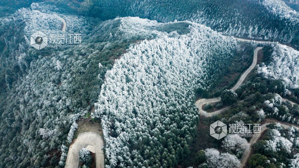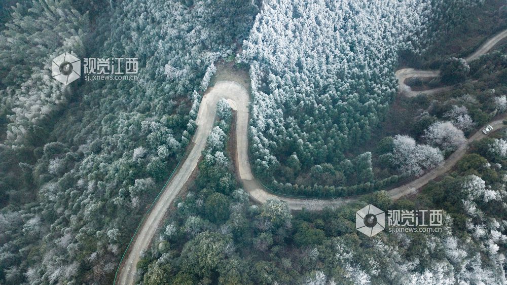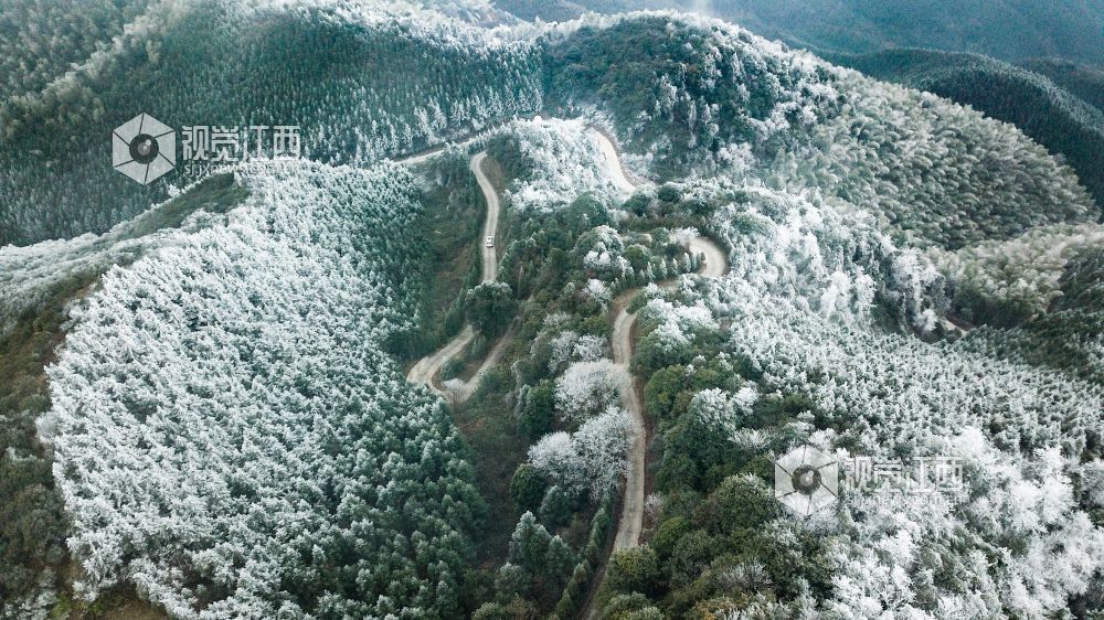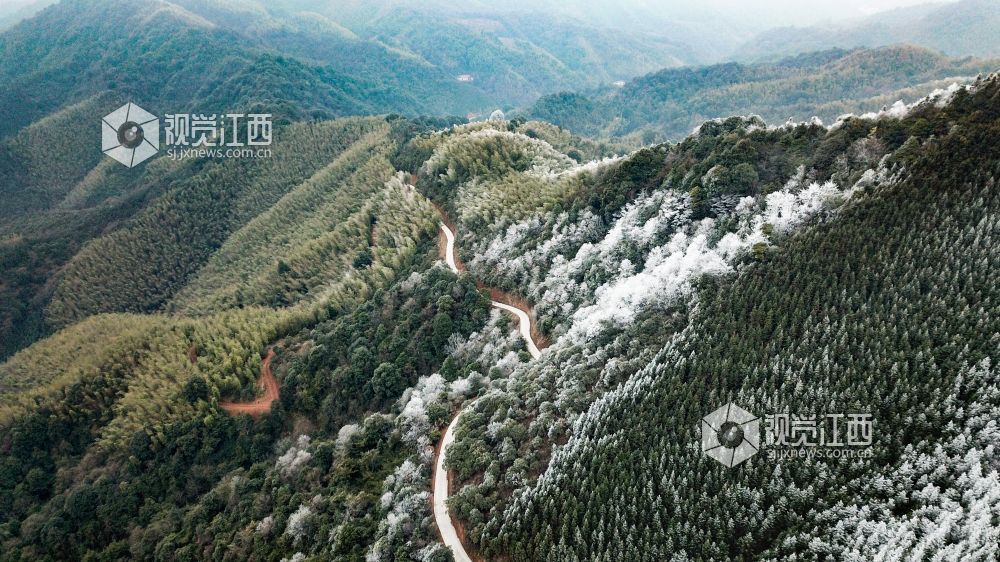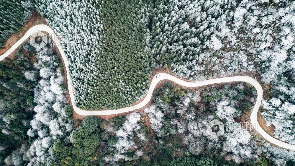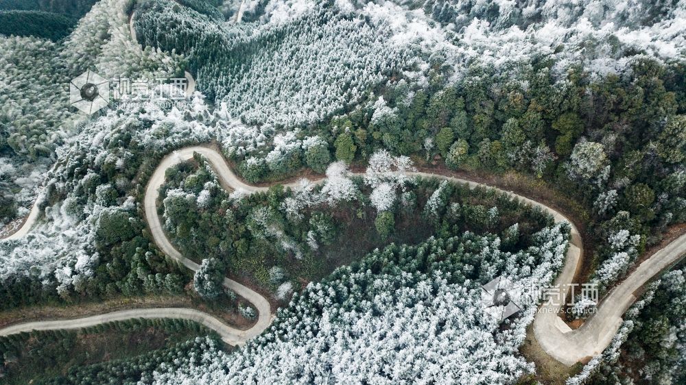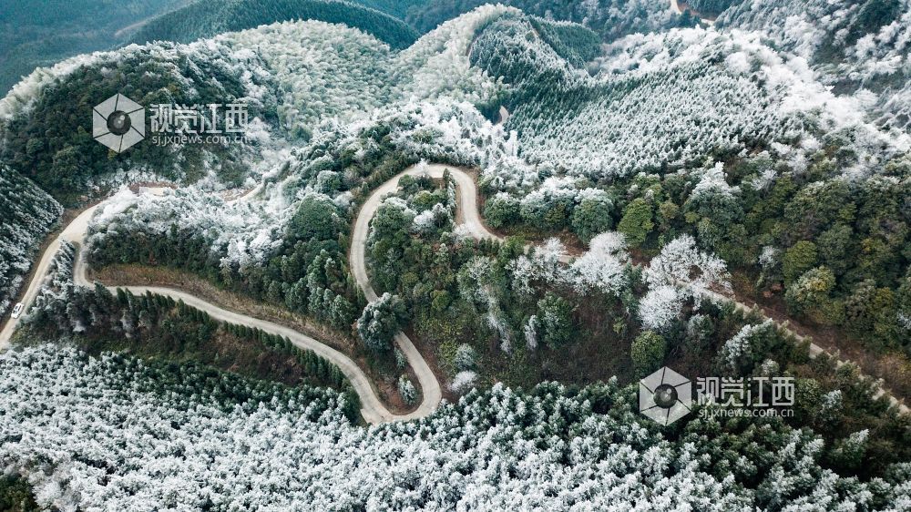 2021年12月27日,江西省泰和县中龙乡东合村迎来了2021年的第一场冬雪,通往五峰山的一条公路犹如巨龙盘旋在山间,冬雪过后,仿佛给巨龙披上了银装,放眼望去,美不胜收。