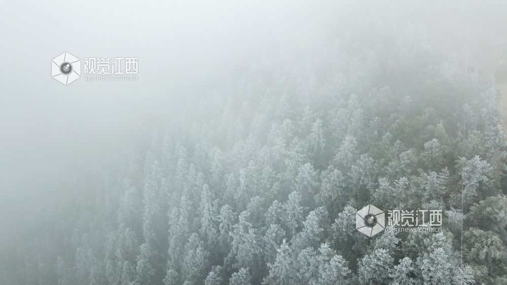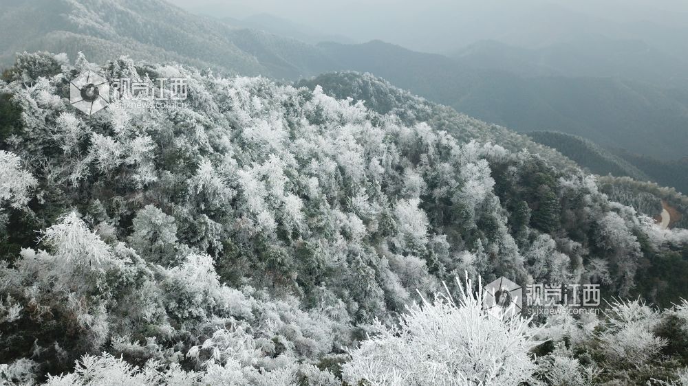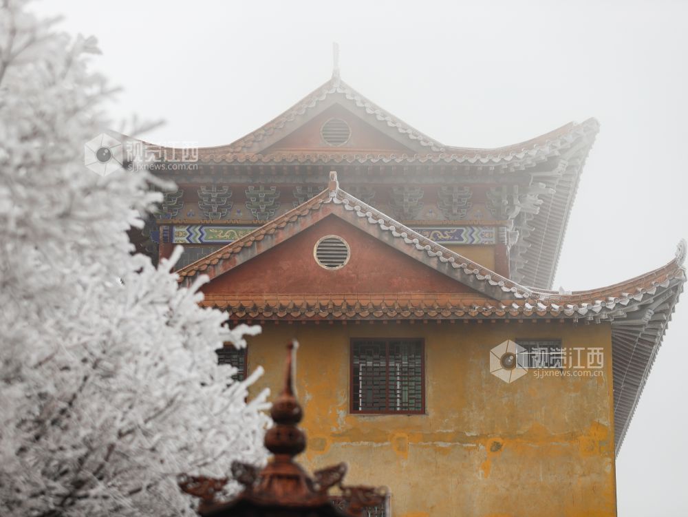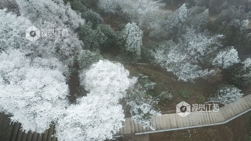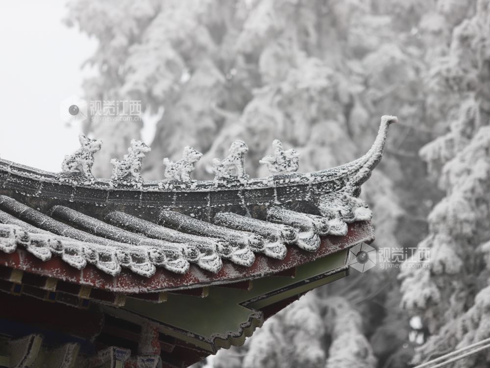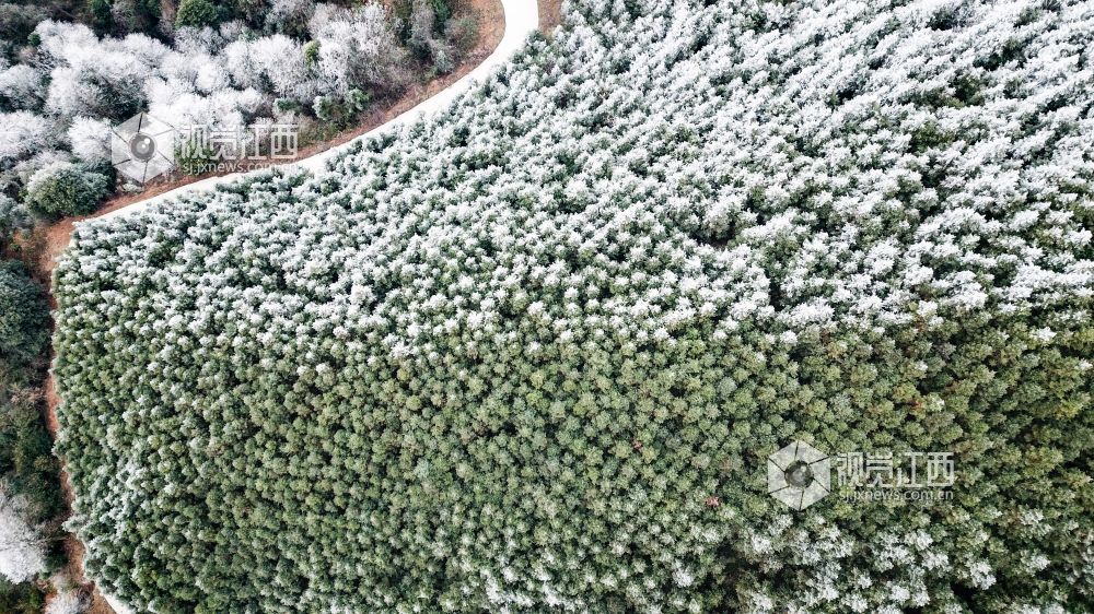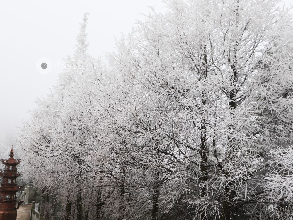 山顶的独特气候,在低温下形成了美轮美奂的雾凇景观,走近一看,似人间仙境,好一幅银装素裹的冬日盛景。