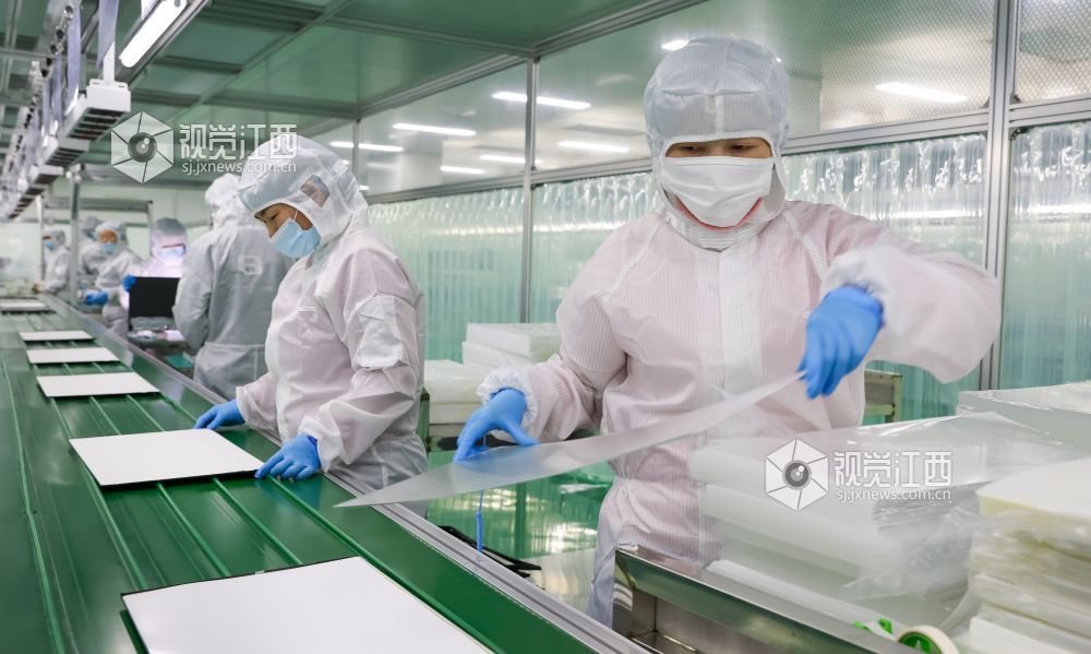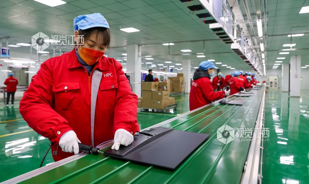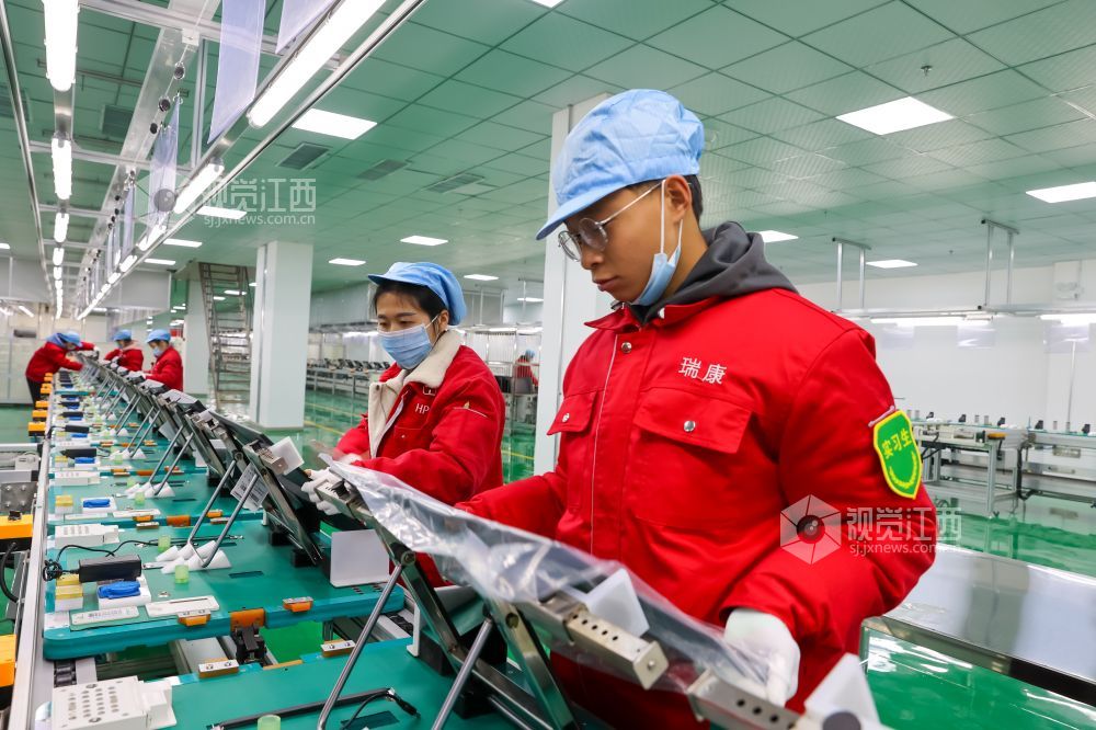 2021年12月29日,位于江西省瑞昌市一公司车间内,工人们正在生产线上赶制订单。