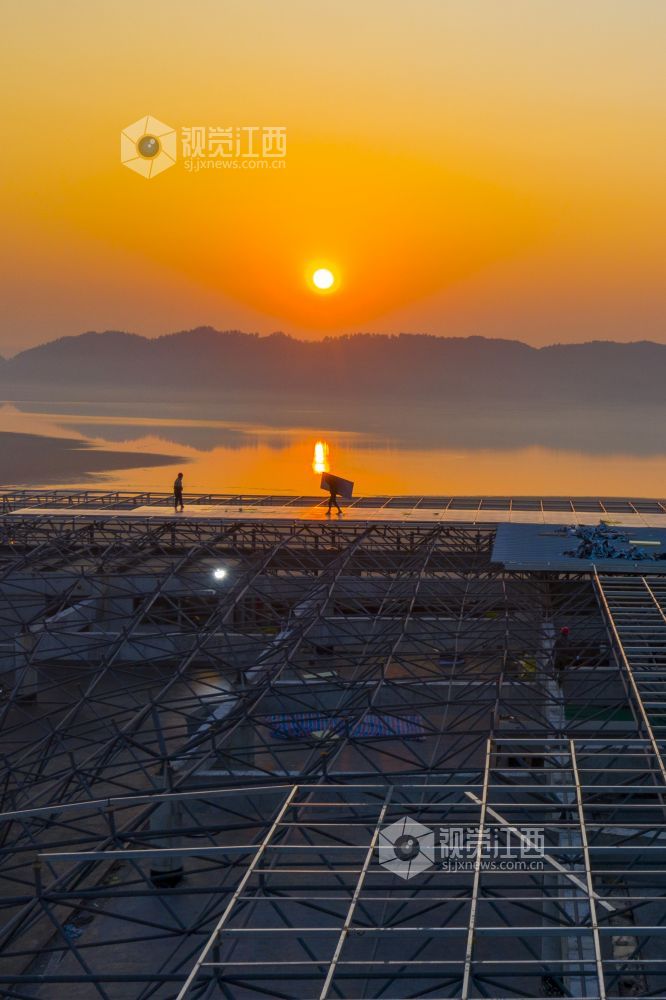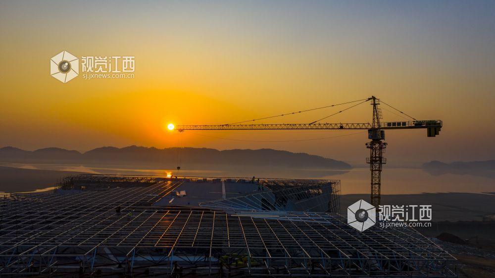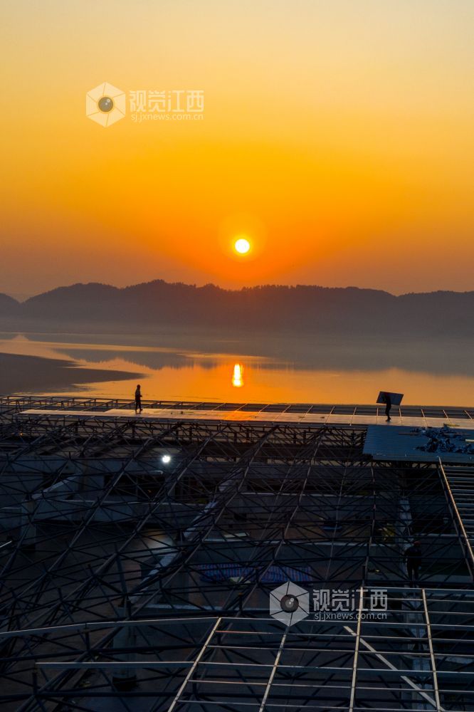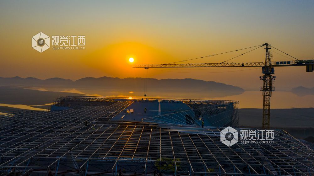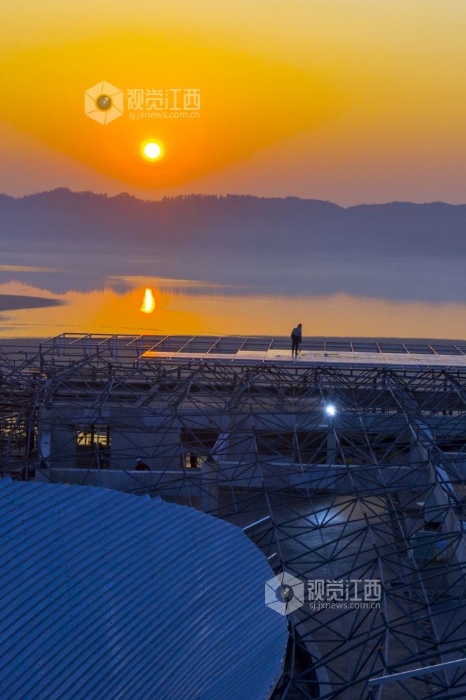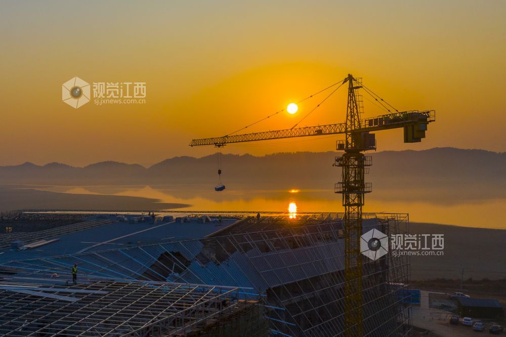 2021年12月31日,伴着冬日朝阳,江西省九江市湖口县鄱阳湖畔的长江鄱阳湖水生物保护基地项目建设工地一派繁忙,工人正稳步有序推进建设进度。