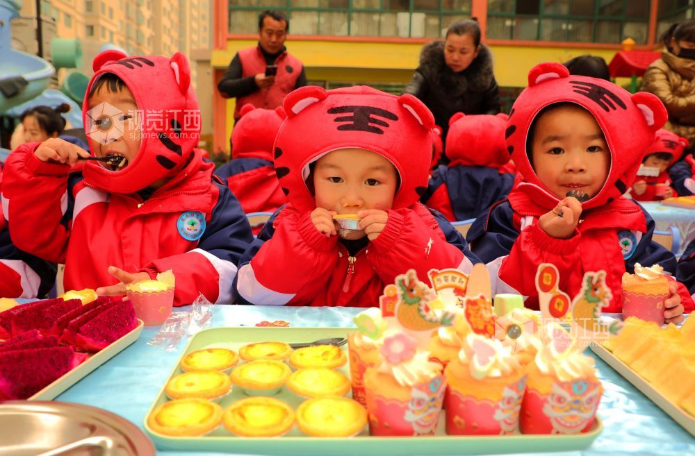 2021年12月31日,江西省永新县各幼儿园举行写福字、剪窗花、挂灯笼、画年画、包饺子等丰富多彩的迎新年主题活动,孩子们通过游戏、联欢等方式,在欢声笑语中迎接新年的到来。