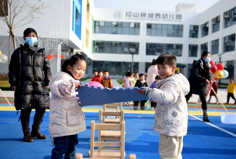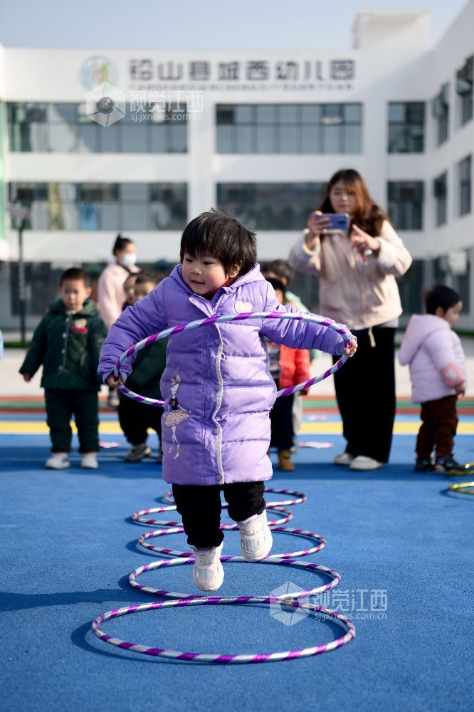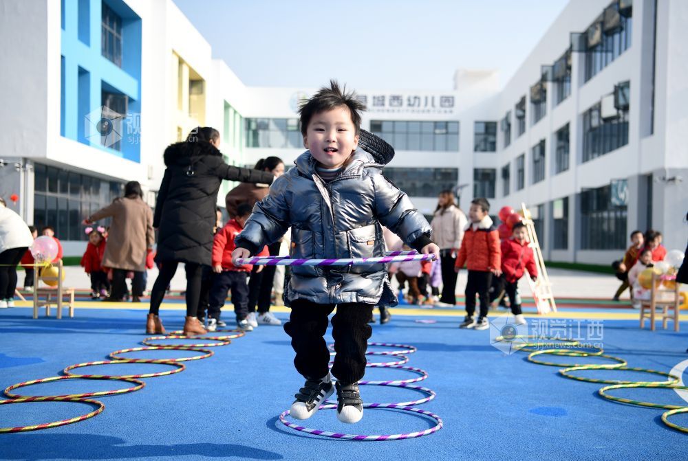 2021年12月31日,在江西省上饶市铅山县城西幼儿园,孩子们正在玩游戏。为丰富孩子们的校园文化生活,培养孩子们积极向上的精神风貌,锻炼团队协作能力,营造欢乐和谐的气氛,让孩子们快乐生活,快乐成长,该园开展了集知识性、趣味性和活动性为一体的游园活动。