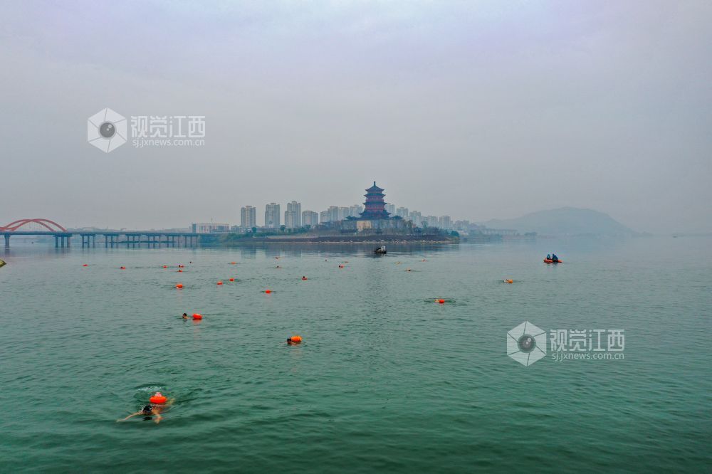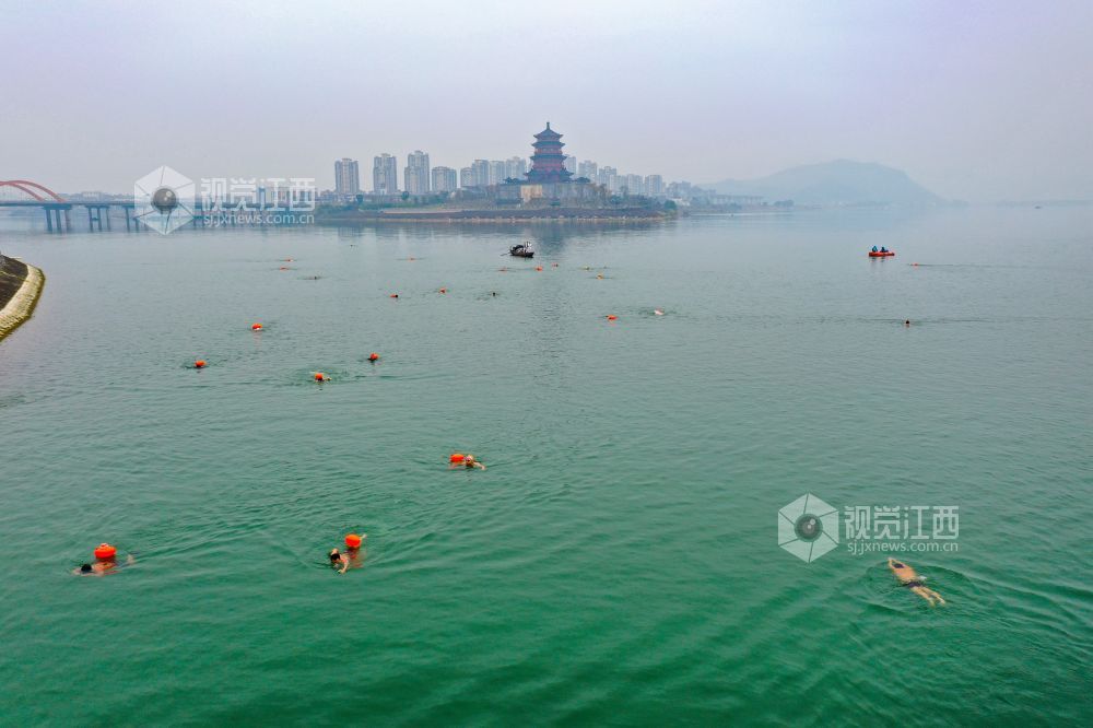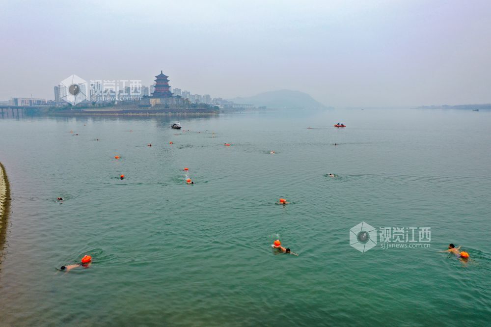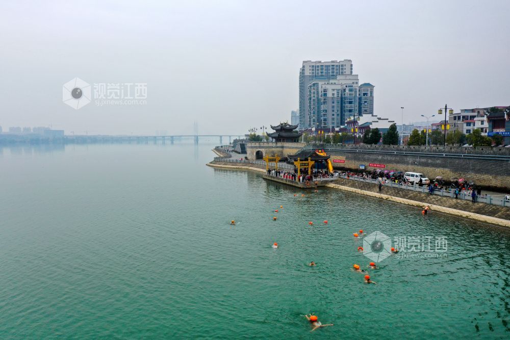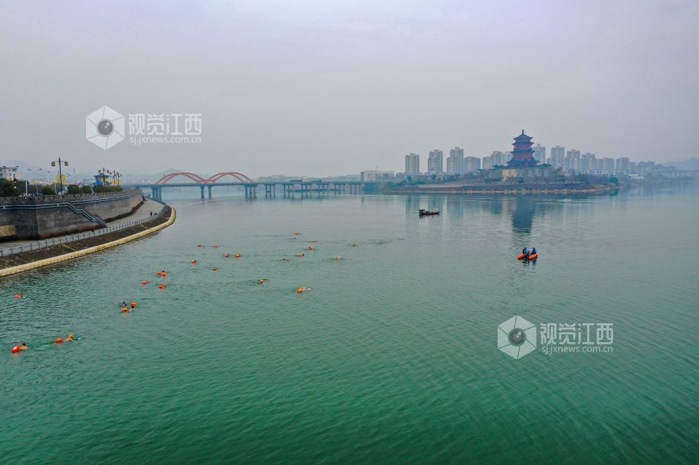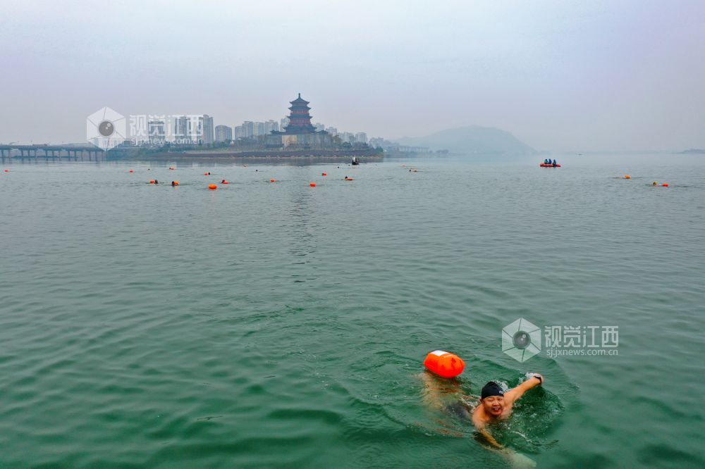 2022年1月1日,江西省吉安市吉水县赣江水面,冬泳爱好者在这里畅游赣江,以冬泳爱好者特有的方式迎接新年。