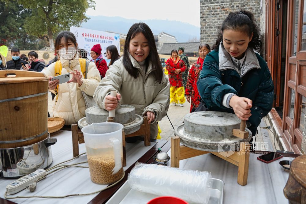 2022年1月1日,新年伊始,江西省安义千年古村举办了丰富多彩的庆元旦,迎新春活动。舞狮子、打糍粑、磨豆腐等活动吸引着游客欢快的互动,尤其是古村的新年”老人宴”,更体现了爱老敬老淳朴的乡风民情,带来了浓浓的年味。