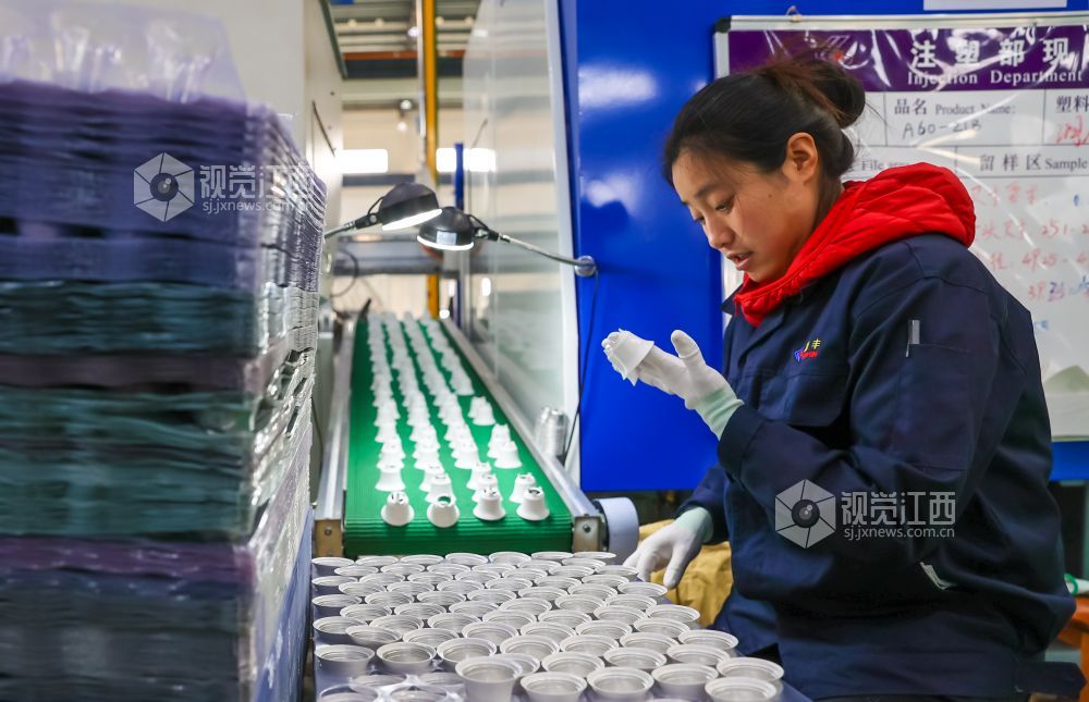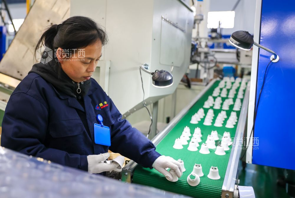 2022年1月2日,位于江西省瑞昌市科技园的江西晨丰科技生产车间内,工人们正在赶制照明配套器件订单。