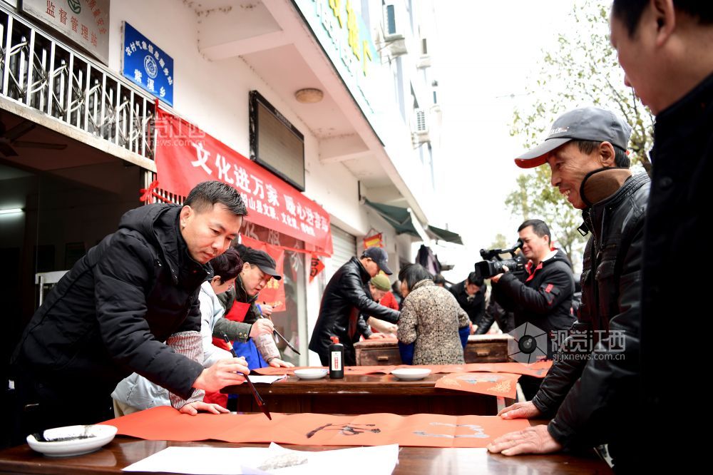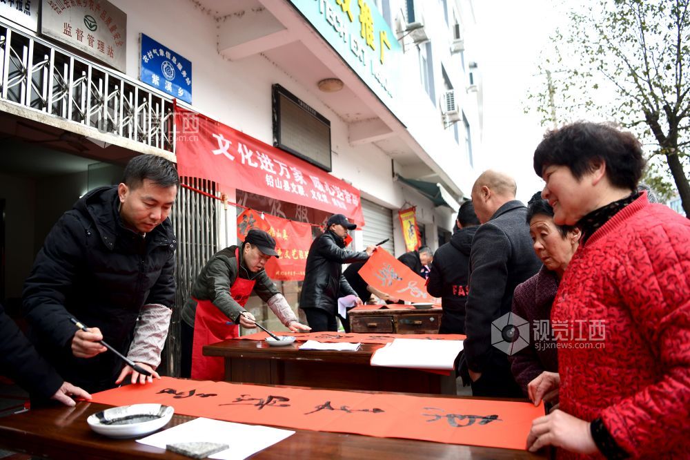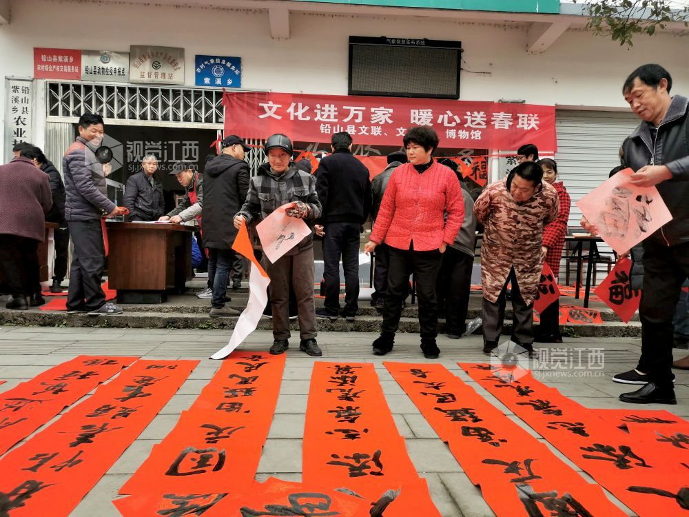 春节将至,为弘扬传统文化,营造浓厚的文化生活氛围,铅山县文联组织书法爱好者“进社区、进乡村、进企业、进学校”,开展“文化进万家,暖心送春联”活动,现场免费为居民写福和春联,把一幅幅平安和谐、吉祥如意的春联化作美好祝愿,为即将来临的春节增添了浓浓的喜庆氛围。