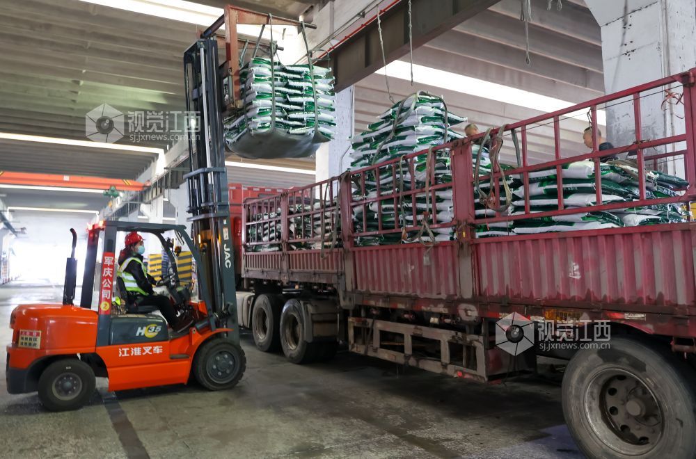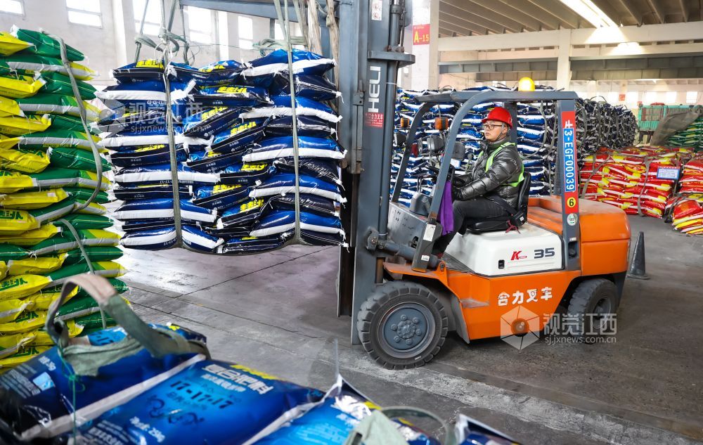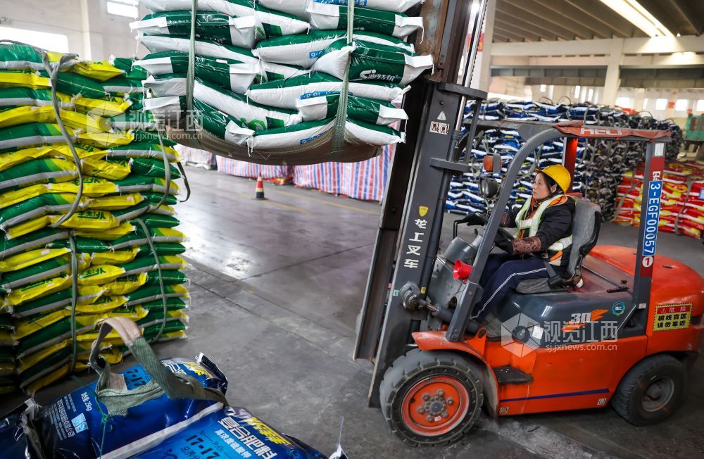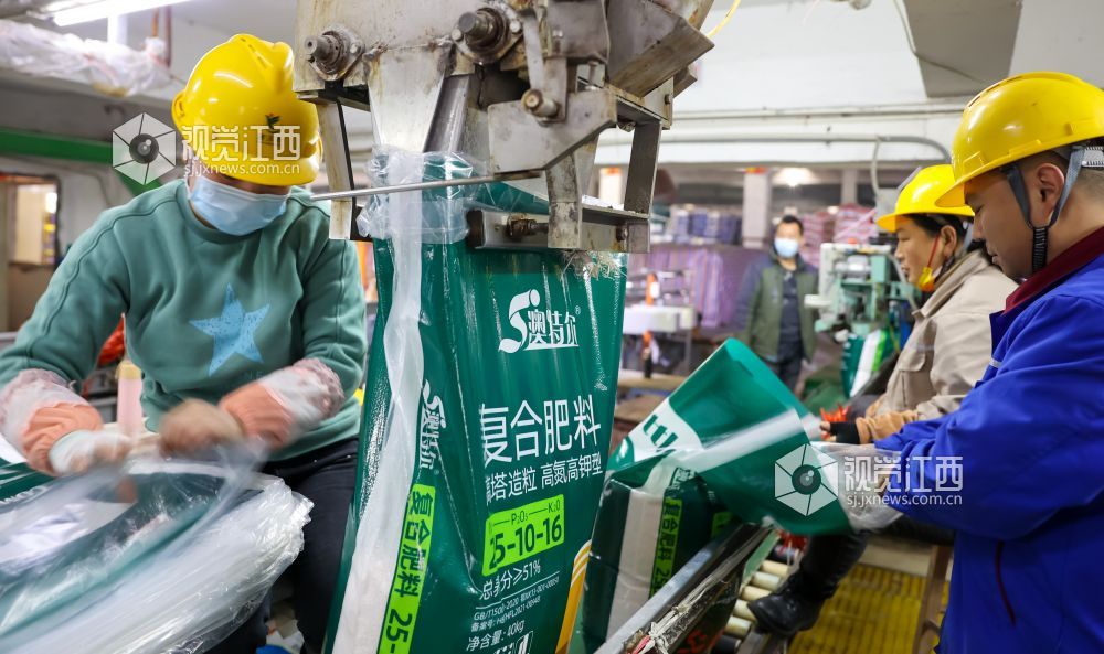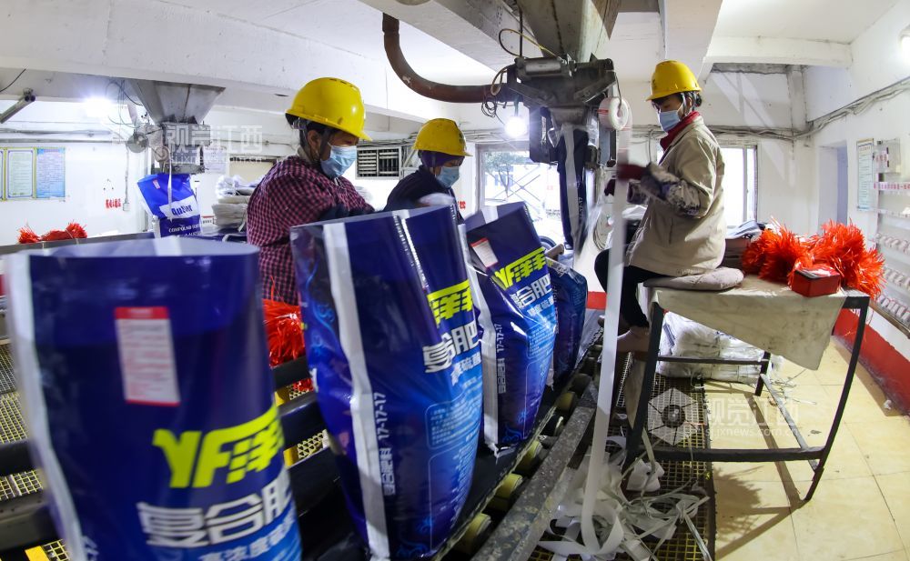 2022年1月9日,位于江西省瑞昌市码头工业城内的一公司生产车间里一派繁忙,工人们正在生产和装卸化肥。