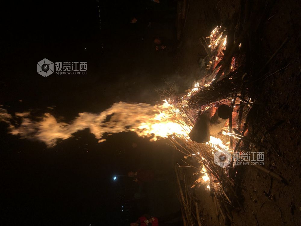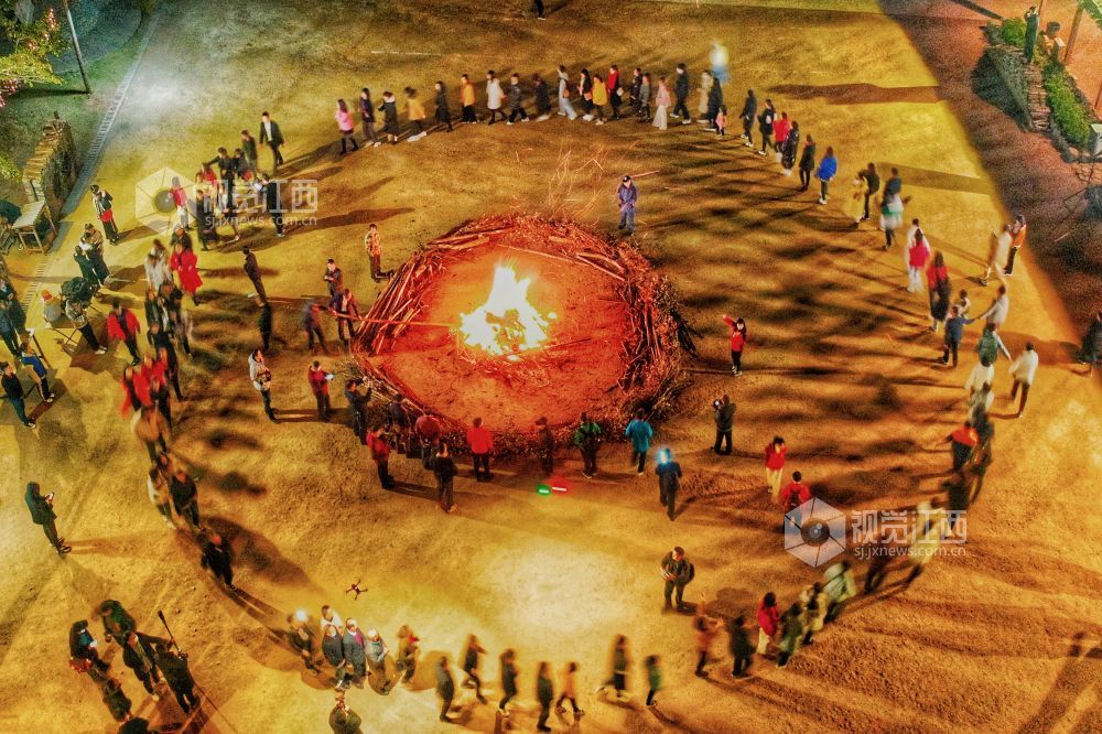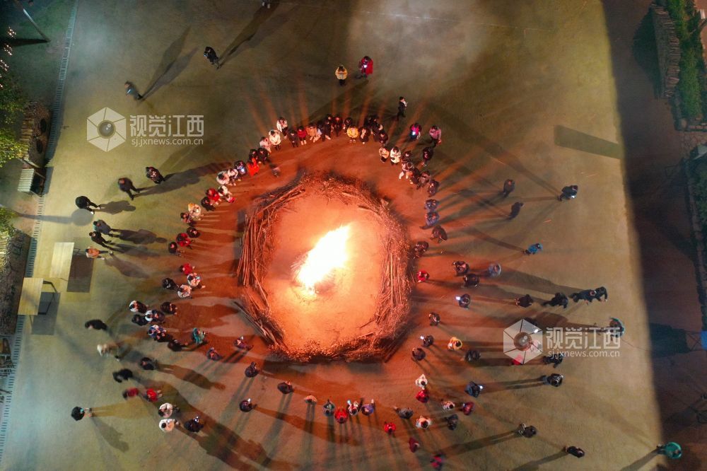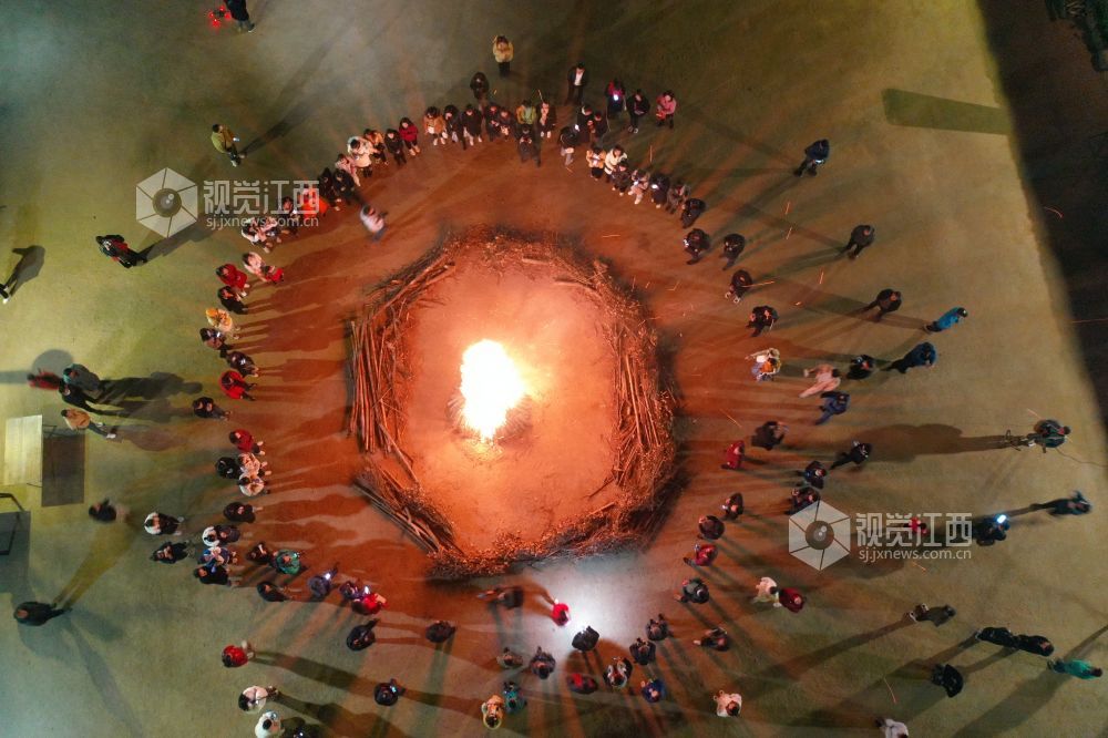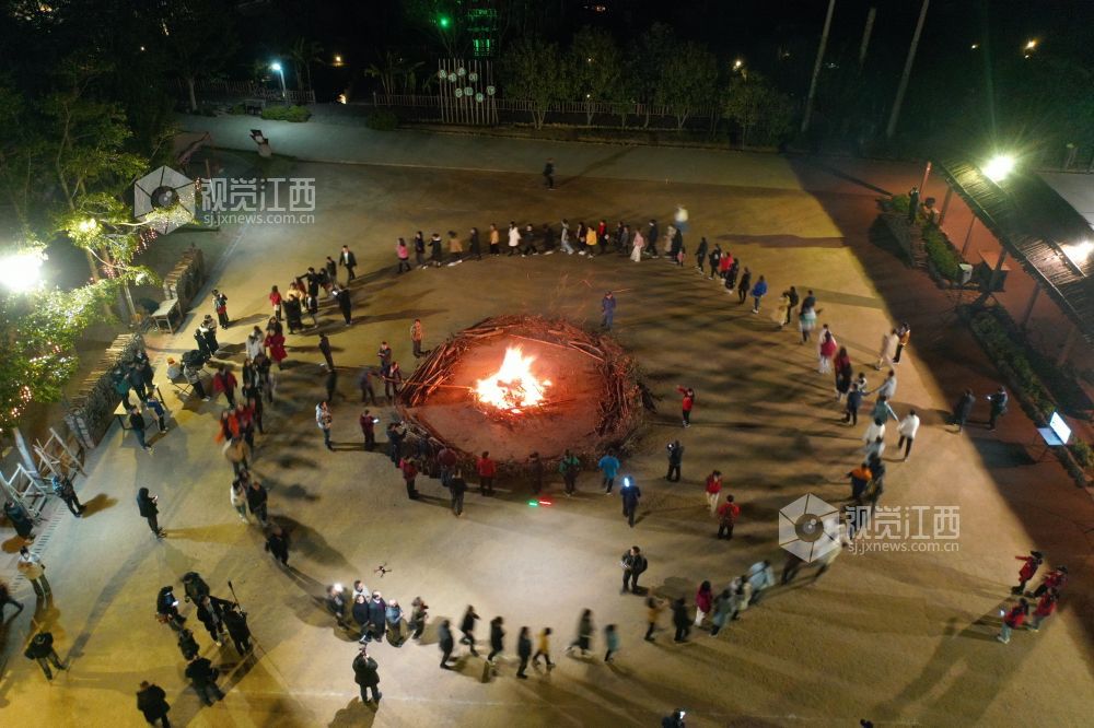 1月8日晚,江西省大余县丫山风景名胜区点燃一堆篝火,引来数百游客观赏跳跃放声歌唱。