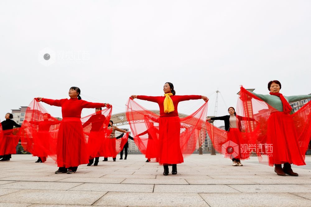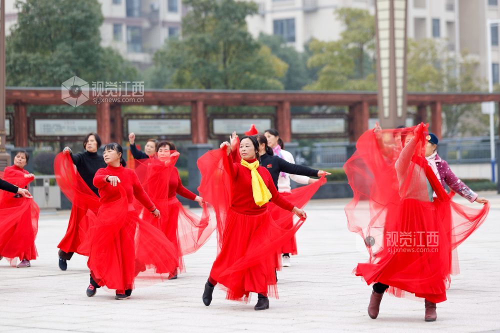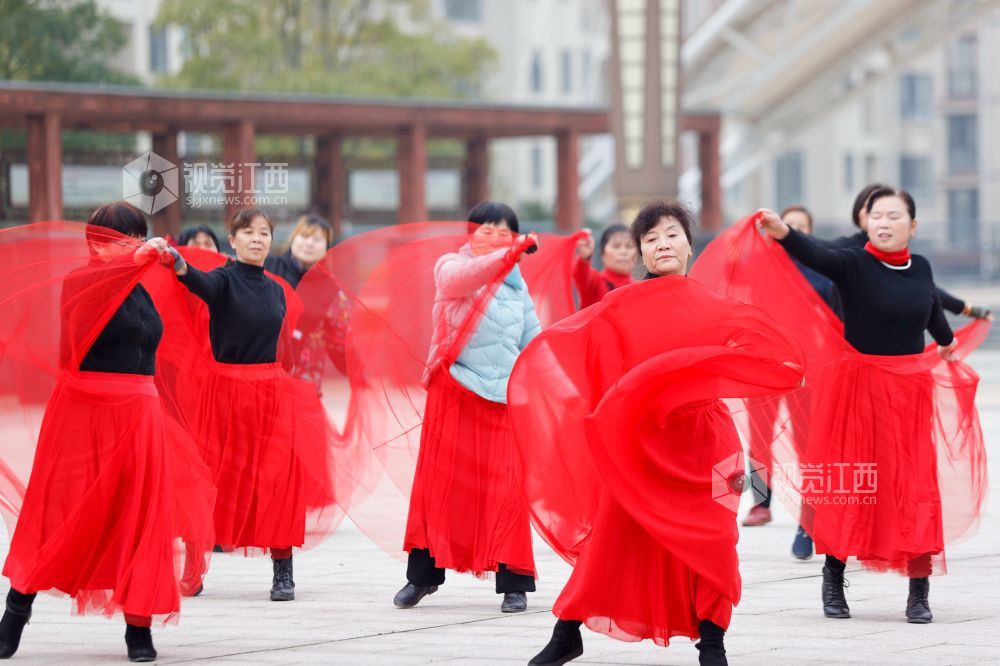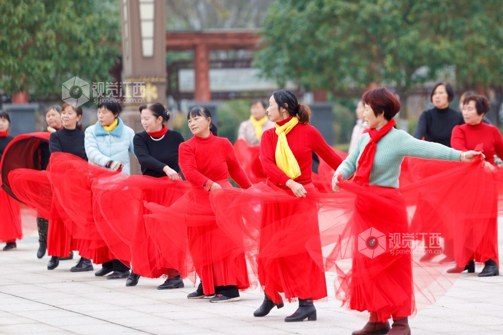 1月12日,在江西省峡江县一处小广场,文艺爱好者在排练迎春歌舞。为迎接虎年春节的到来,峡江县各地的文艺爱好者自发组织排练歌舞节目,以表达对新春的祝福和来年的期盼。
