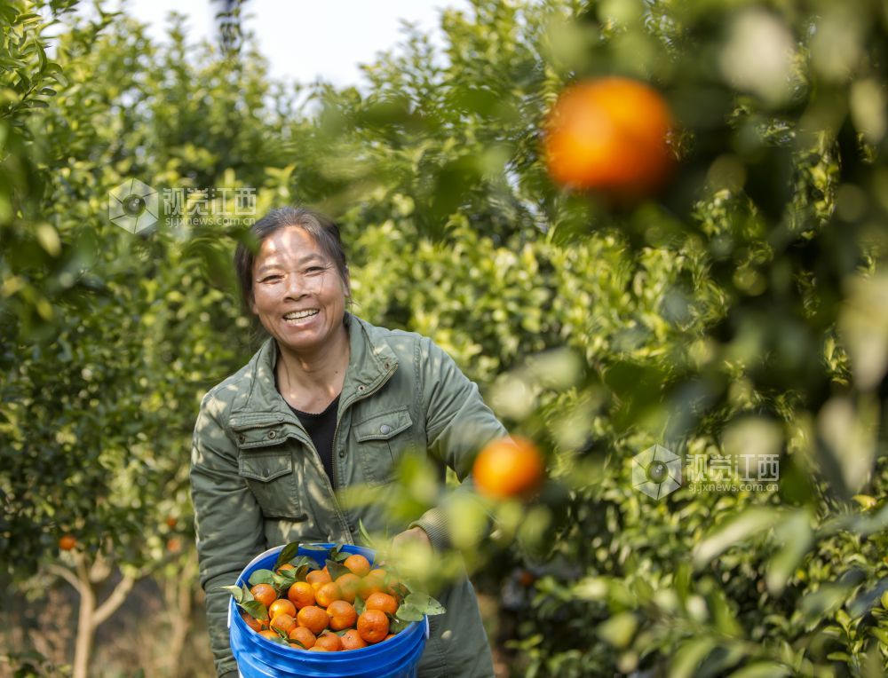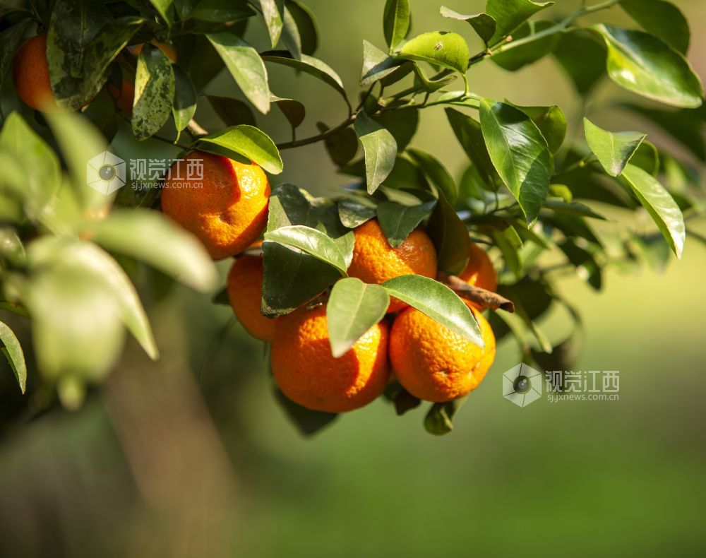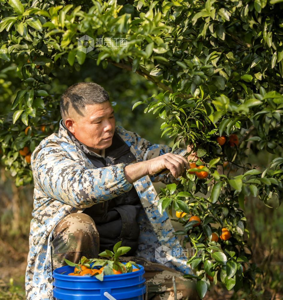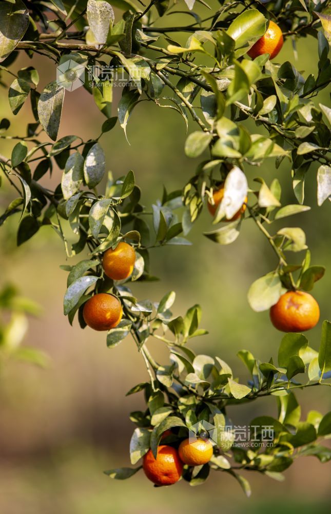 2022年1月12日,冬日暖阳,江西省分宜县洋江镇车田村30余亩砂糖橘园内的砂糖橘挂满枝头金黄鲜艳,让人垂涎欲滴,果农们正在高兴地采摘,洋溢着丰收的景象。