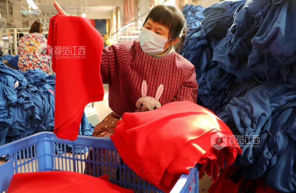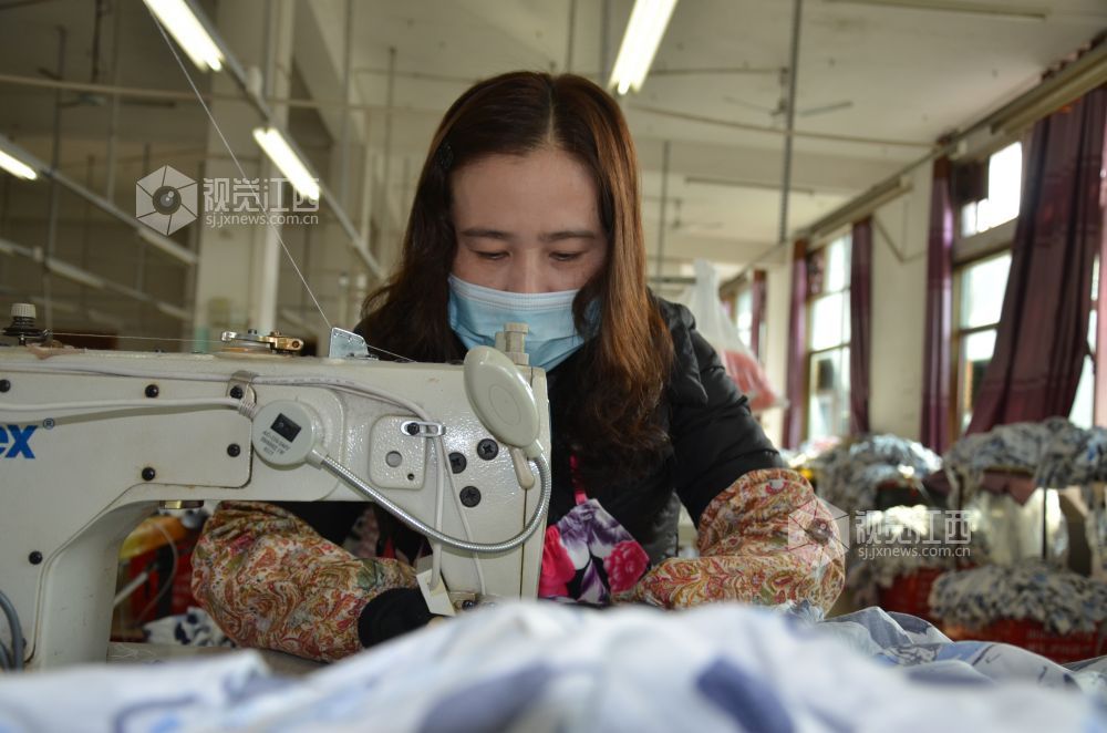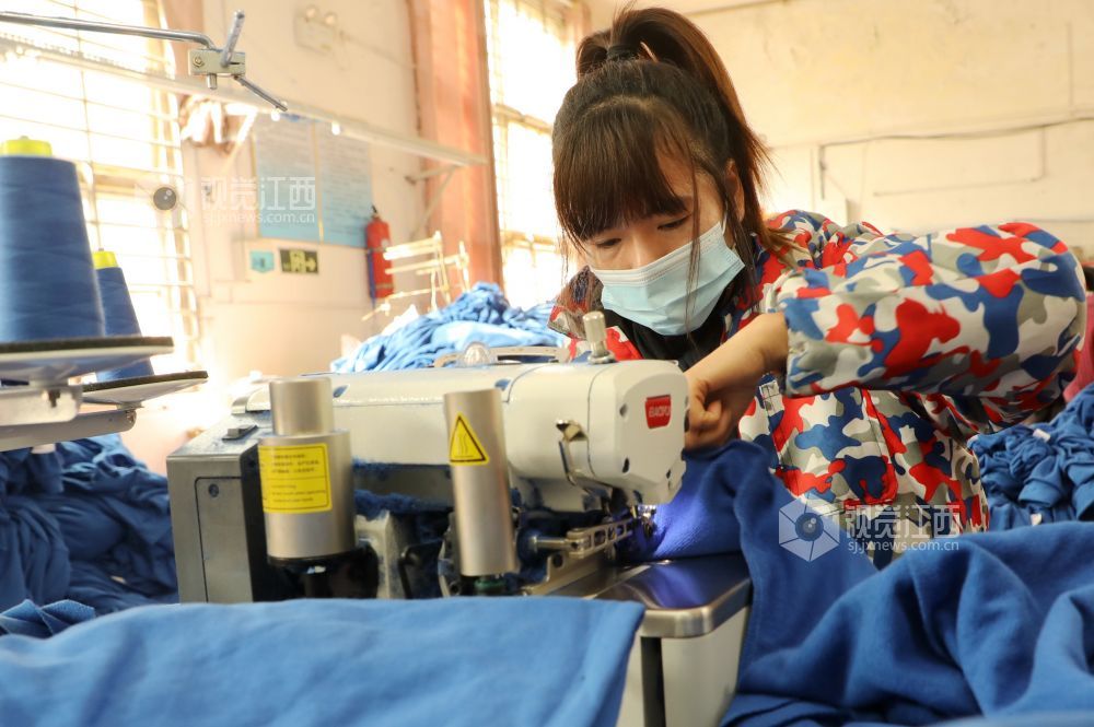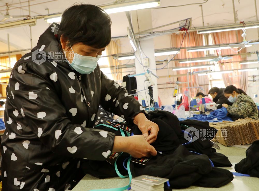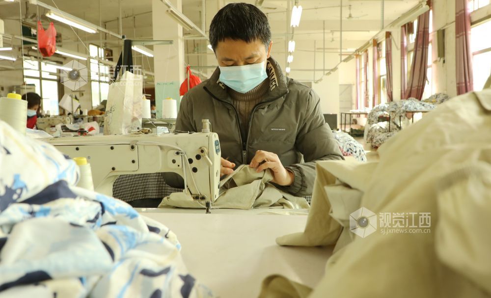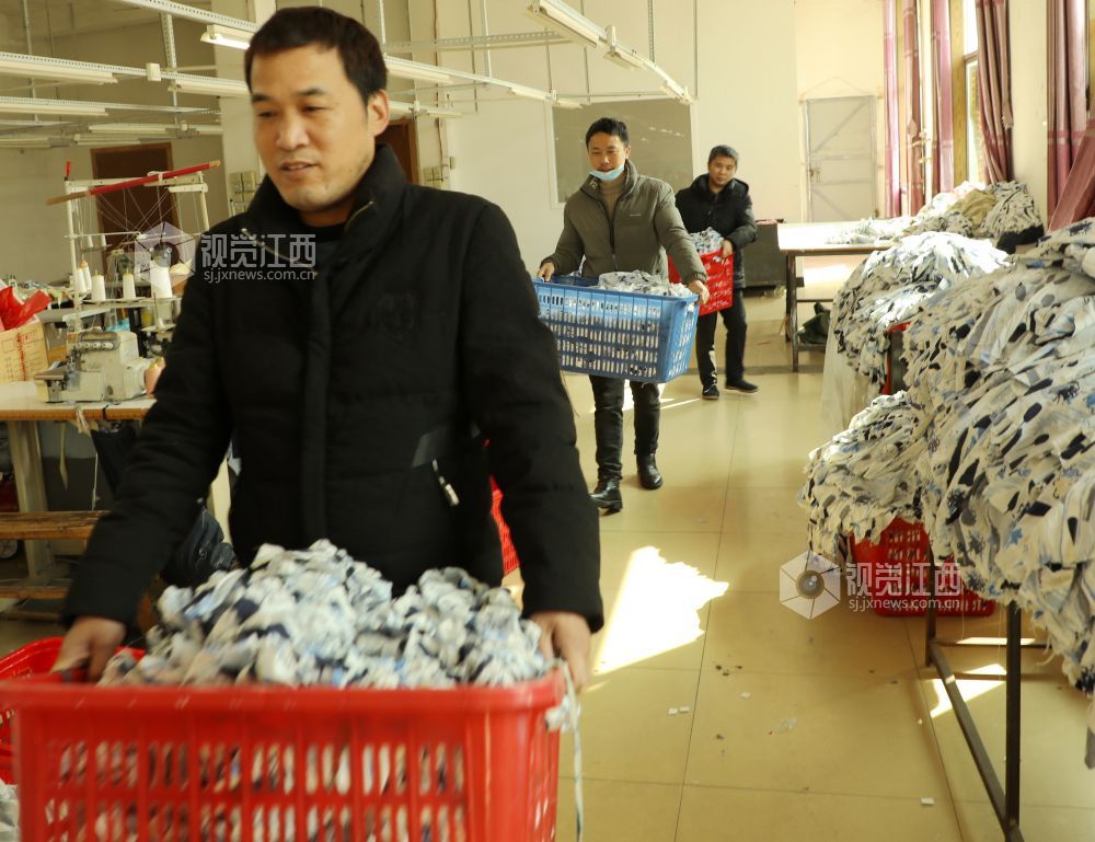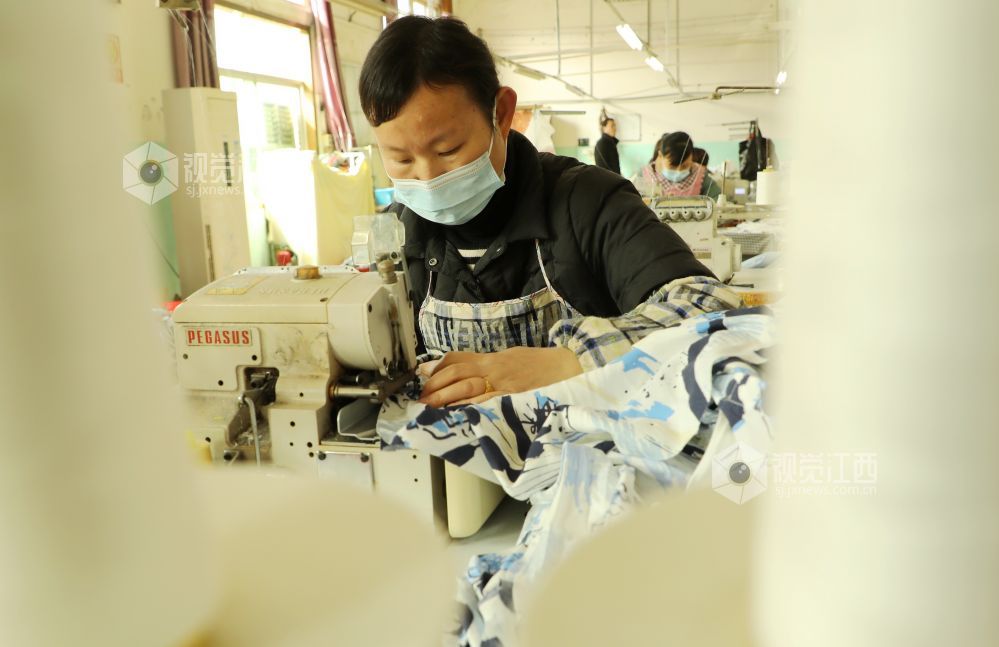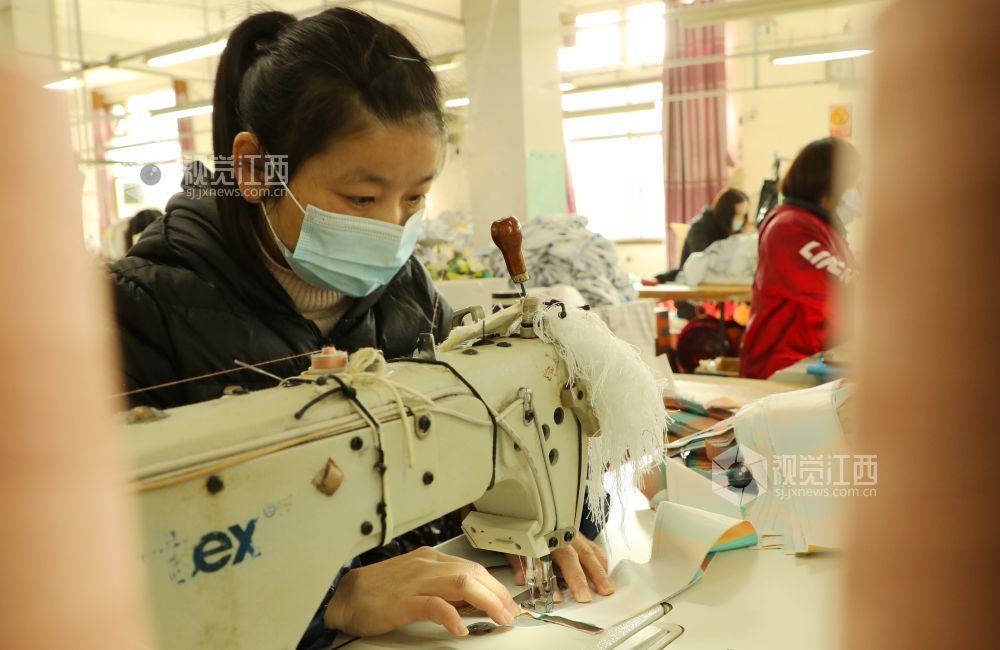 2022年1月12日,在江西省永新县一公司的生产车间内,一排排缝纫电机整齐排列着,工人们正在各自的工位上紧张有序地忙碌着,缝纫机运作时的“嗡嗡”声此起彼伏,裁剪、缝制、熨烫,整个车间一派热火朝天的繁忙景象。