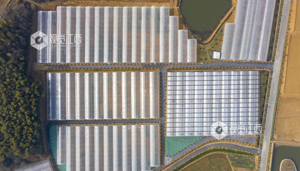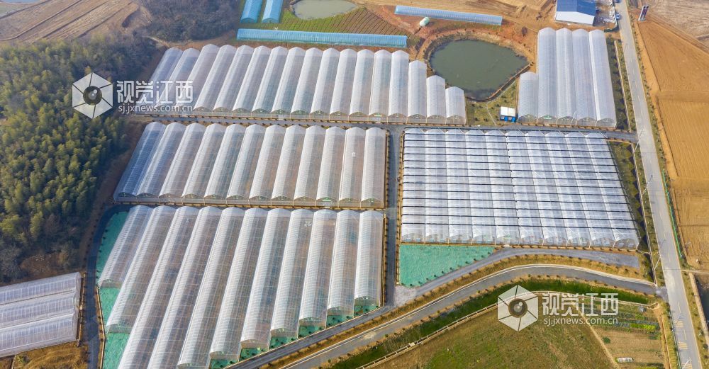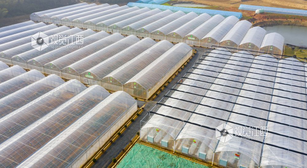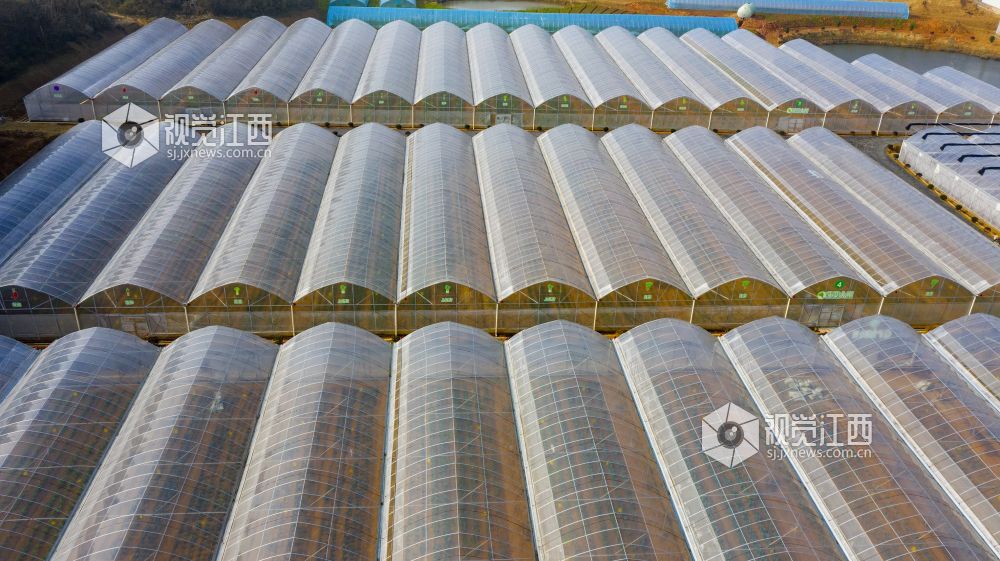 2022年1月13日,江西省九江市湖口县流泗镇现代农业产业园内的设施蔬菜大棚全面建成并投入使用。