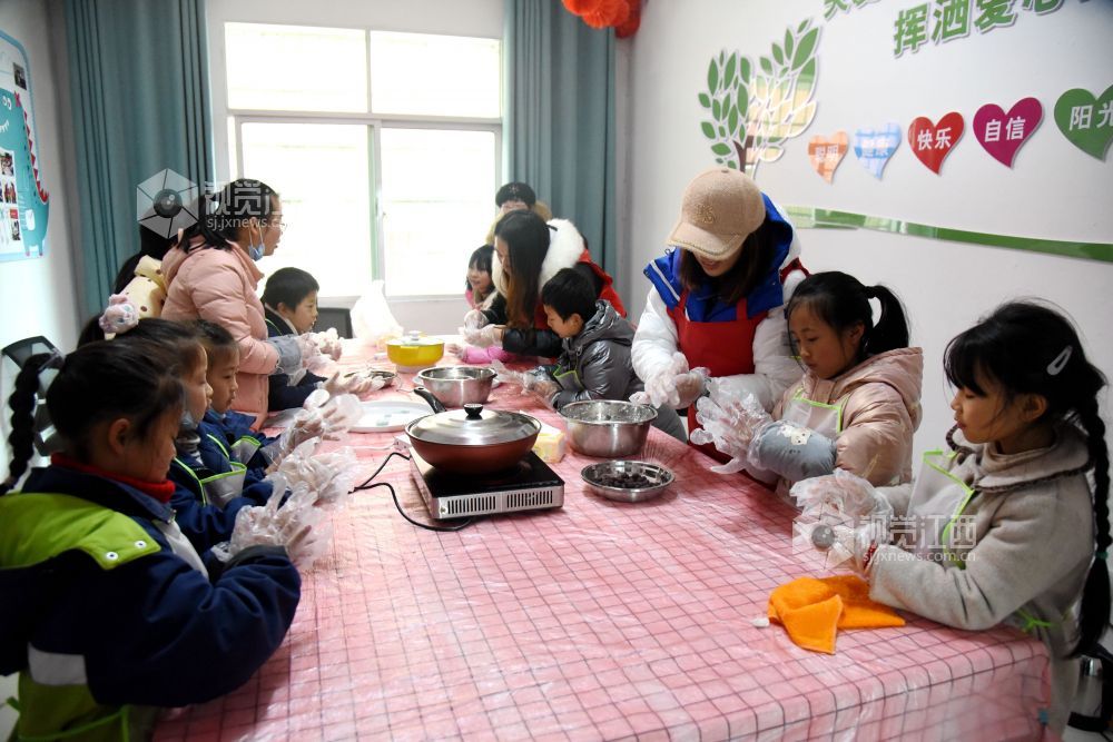 2022年1月11日下午,在江西省抚州市南丰县东坪乡中心学校“留守儿童之家”,县教体文化交流协会组织志愿者在东坪乡中心学??埂耙媛吠小惫匕羰囟疃?,带给留守儿童们暖暖的春意。