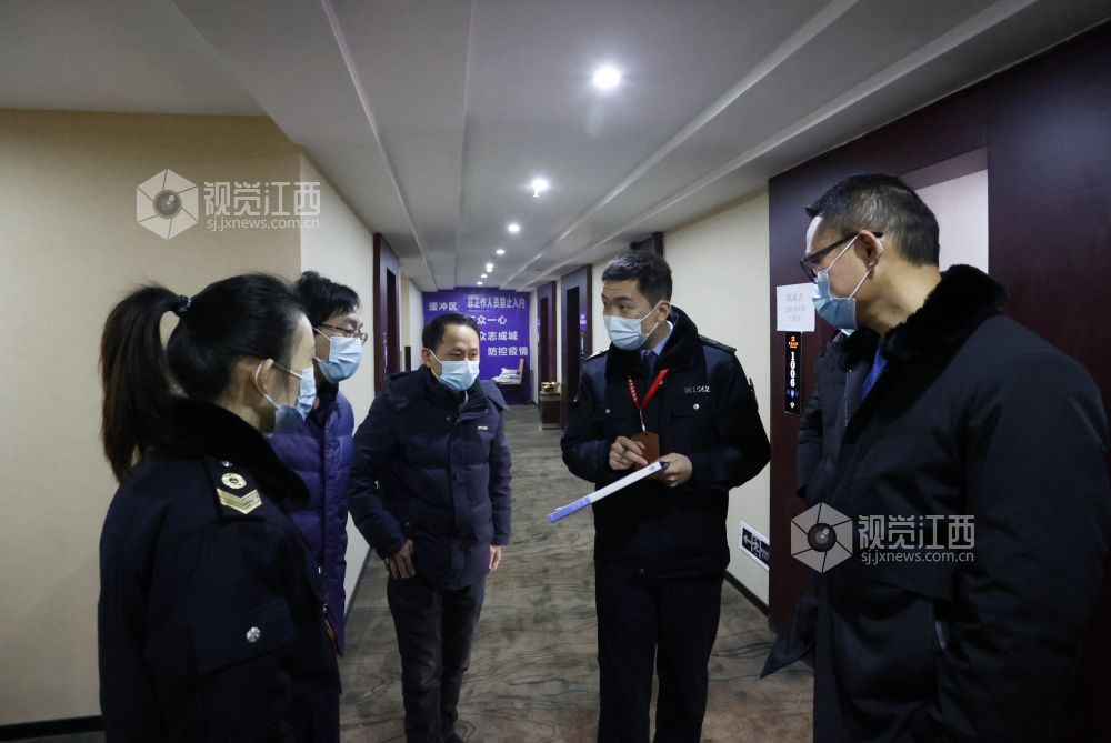 2022年1月15日,江西省九江市湖口县疫情防控督查组对火车站、酒店、商超等重点场所,加强疫情防控工作督查,严格落实“四查一戴”等工作举措,筑牢“外防输入”防线。