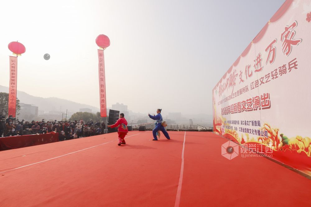 1月19日,江西省湖口县新时代文明实践文艺志愿服务队在石钟山景区文化活动广场,举行“我们的中国梦·文化进万家”迎新春文艺演出。