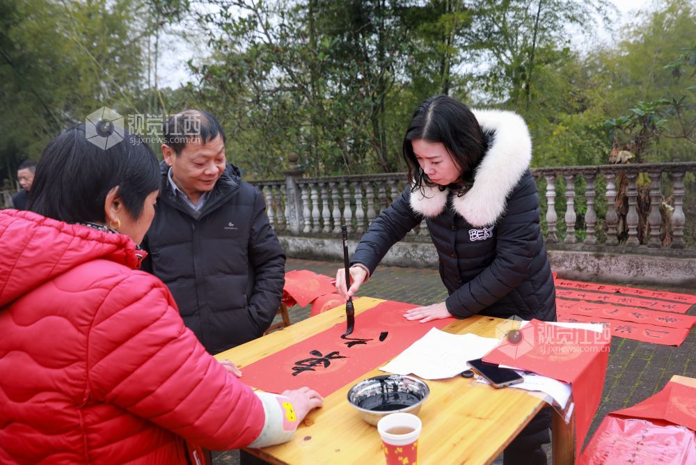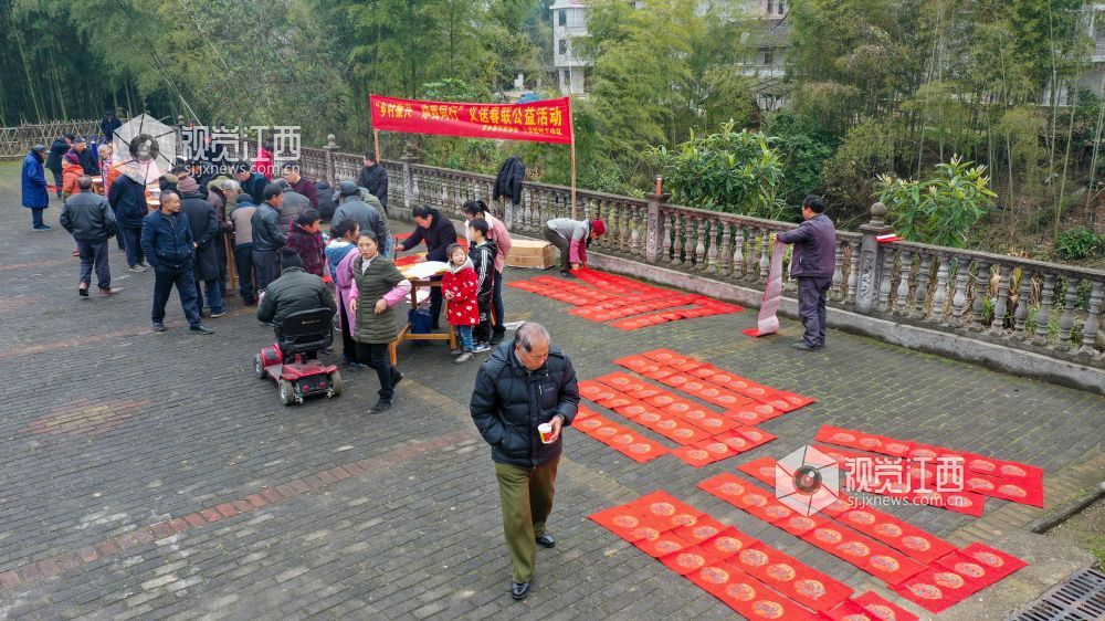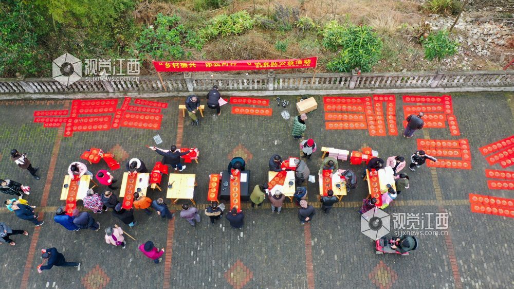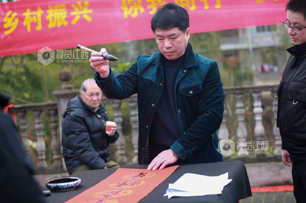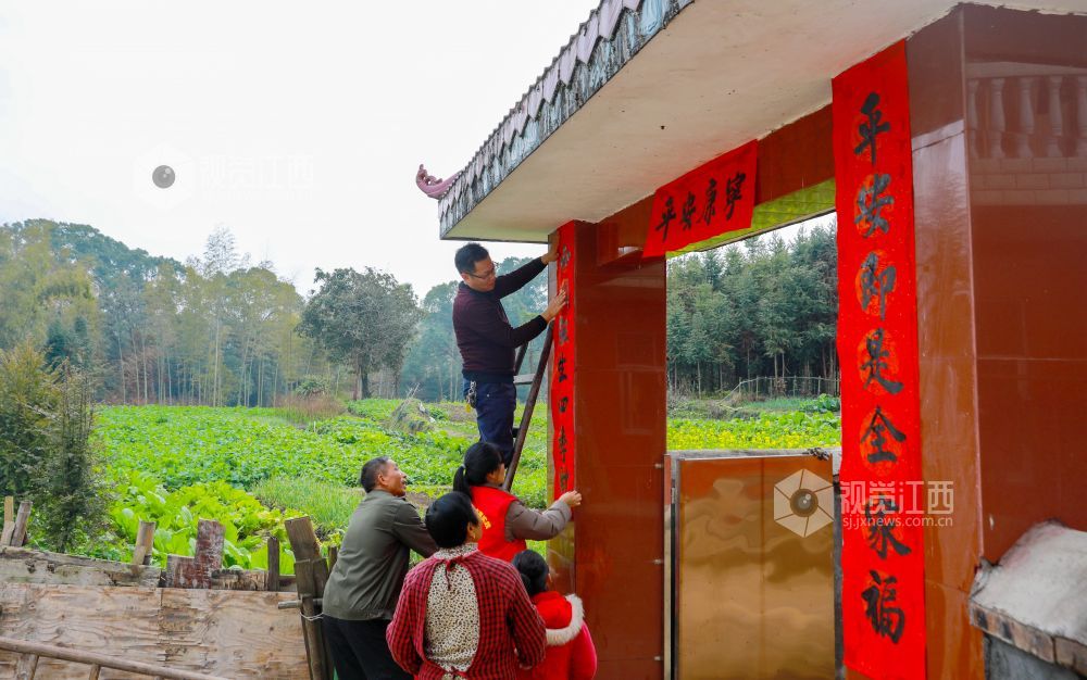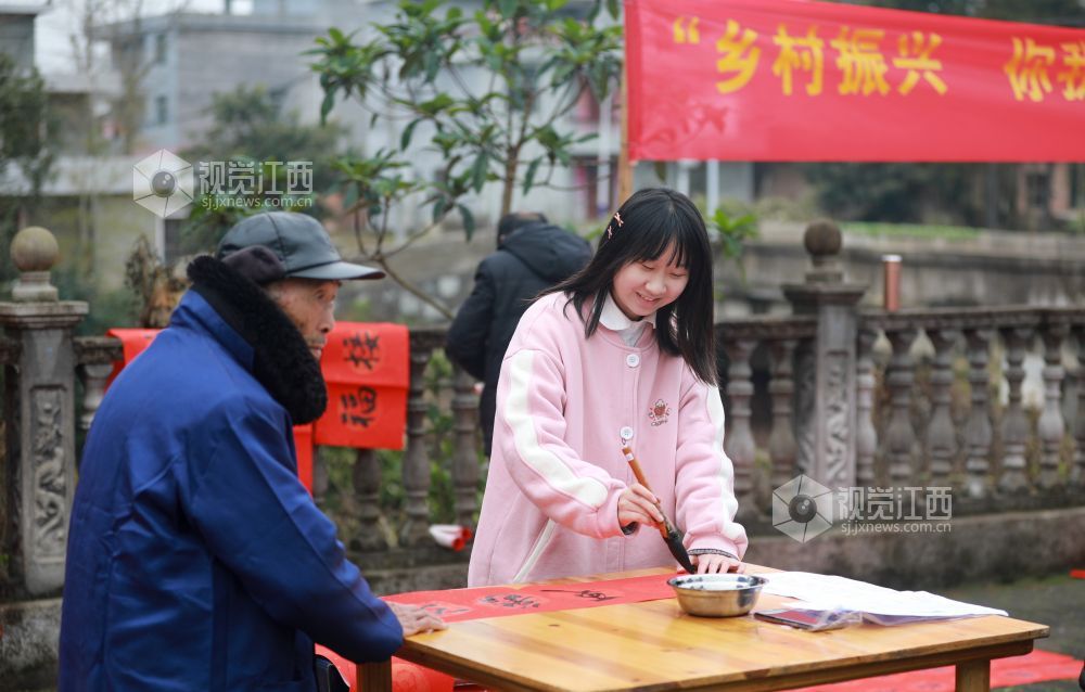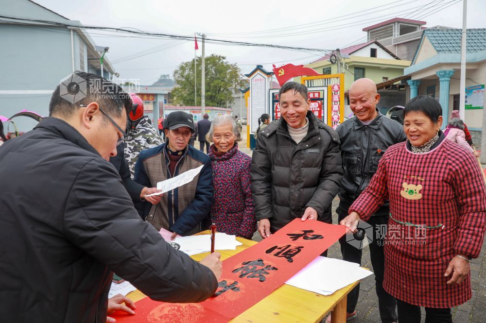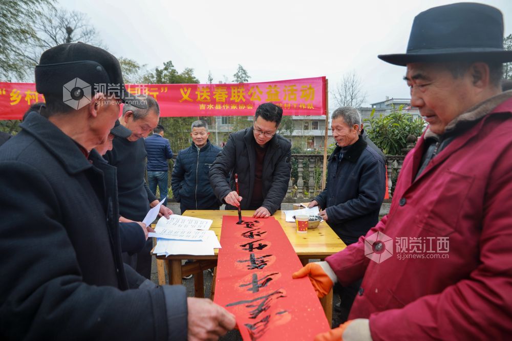 新年将至,年味渐浓,江西省吉安市吉水县白沙镇上田村喜气洋洋,驻村帮扶干部邀请文化志愿者自带笔墨红纸来到村里,免费为村民书写春联,为乡村新年增添喜庆。