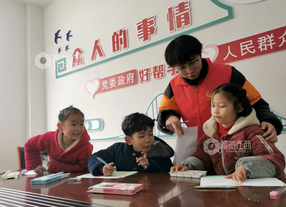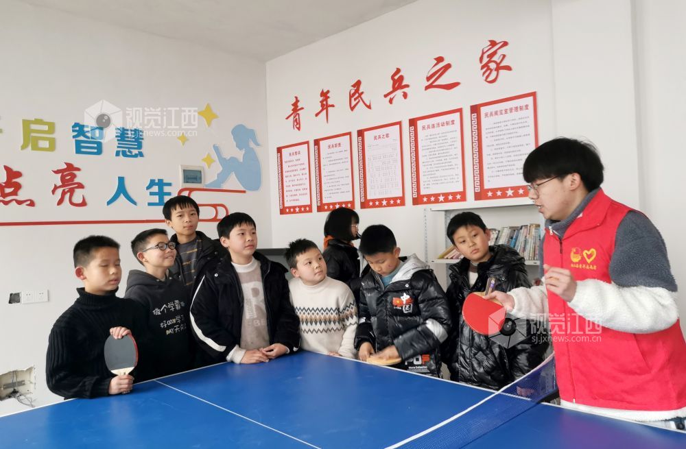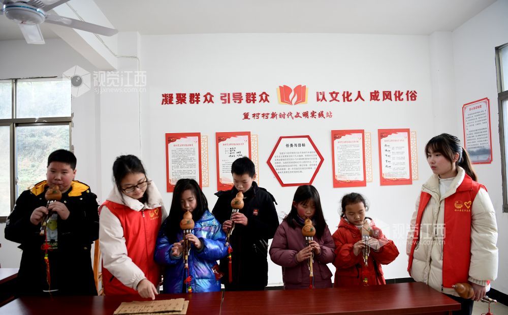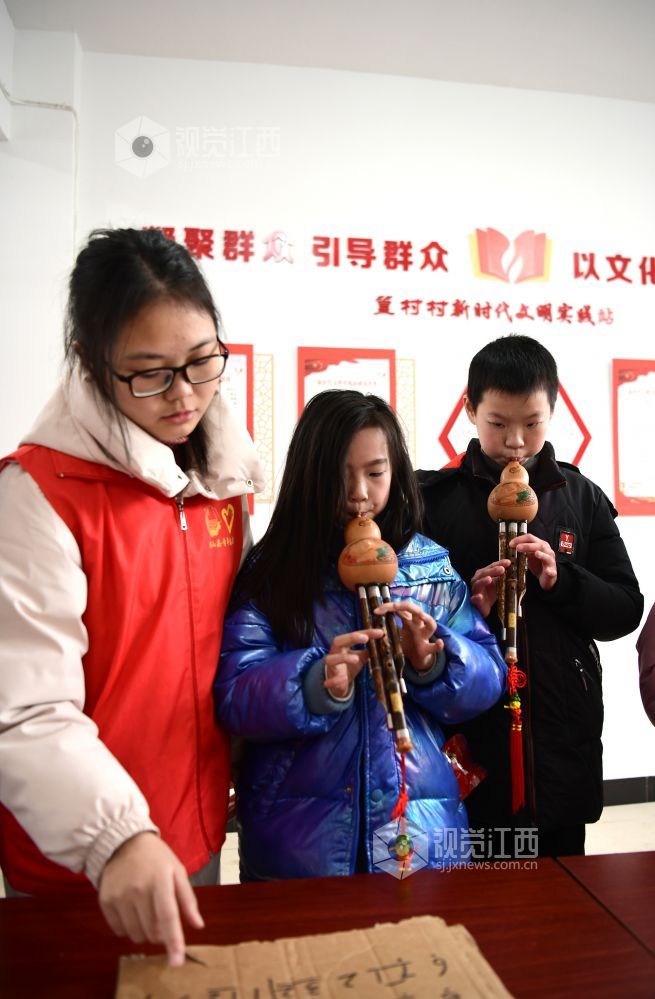 2022年1月19日,在江西省上饶市铅山县武夷山镇篁村村新时代文明实践站,孩子们在学习画画、打乒乓球、吹葫芦丝……。