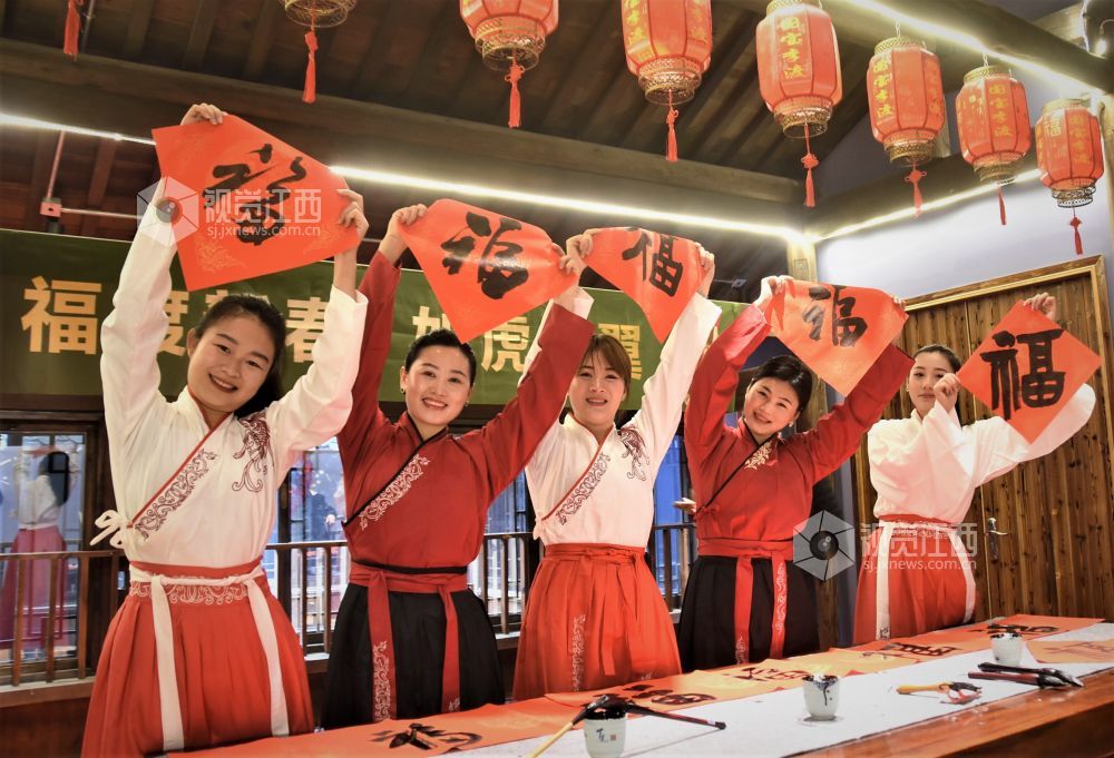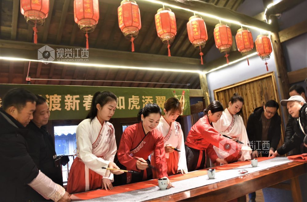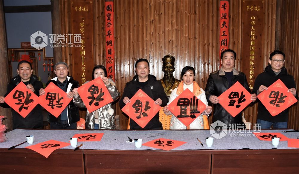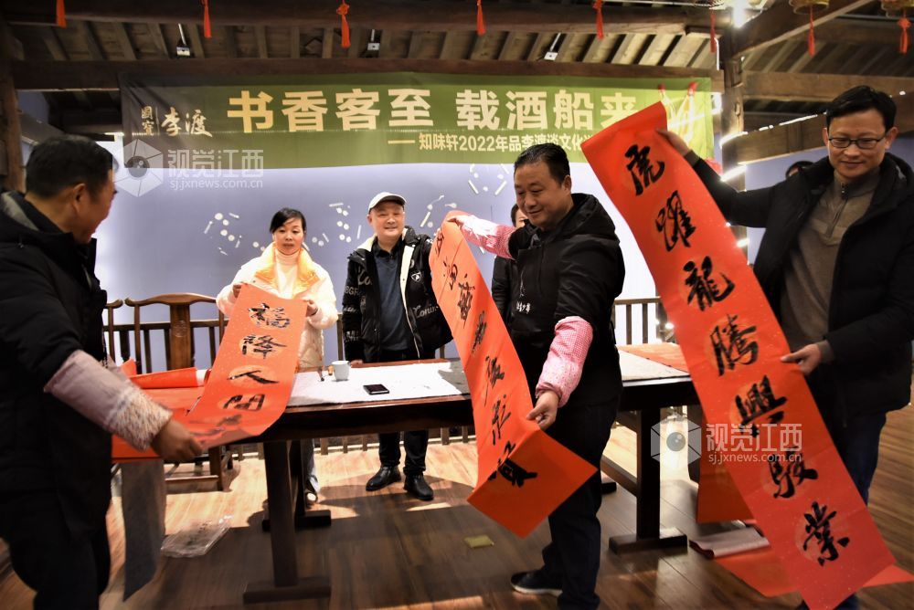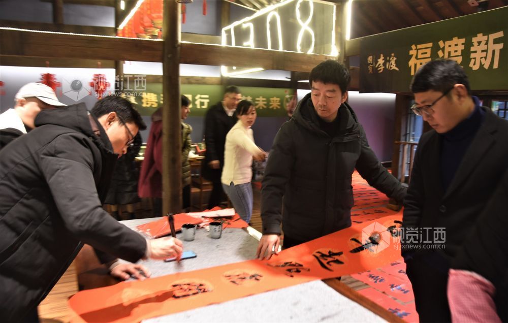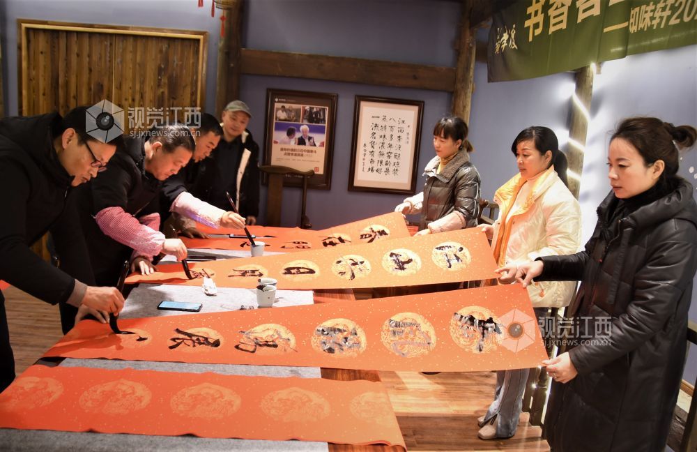 2022年1月22日, 江西省鄱阳县鄱湖文化研究会、鄱江女子学院、鄱阳楹联协会联合组织开展书法家挥毫泼墨为企业送福上门活动。