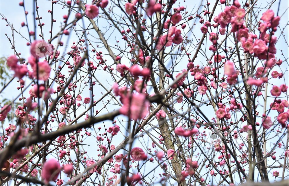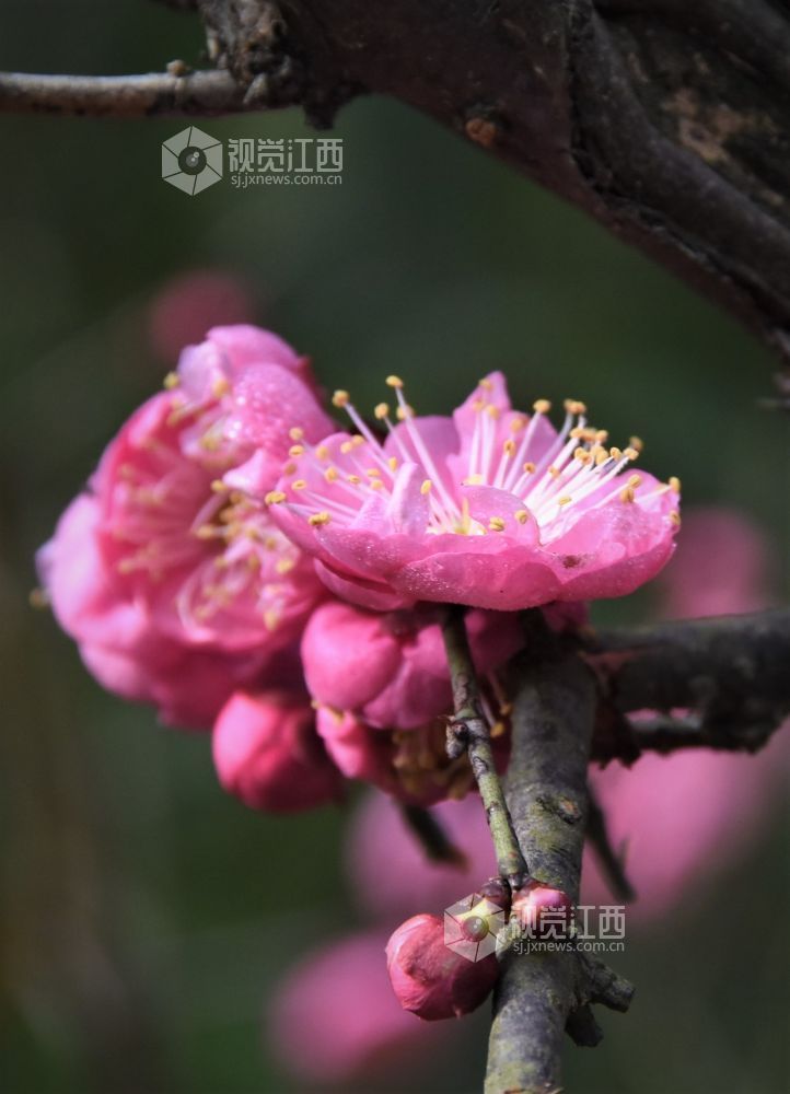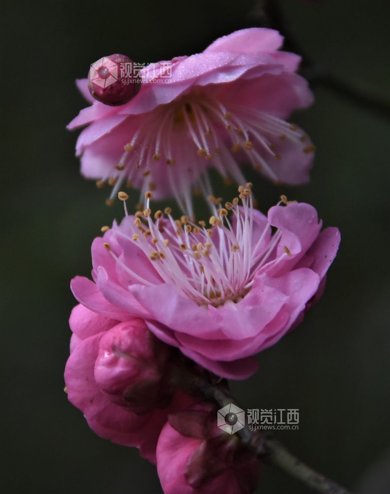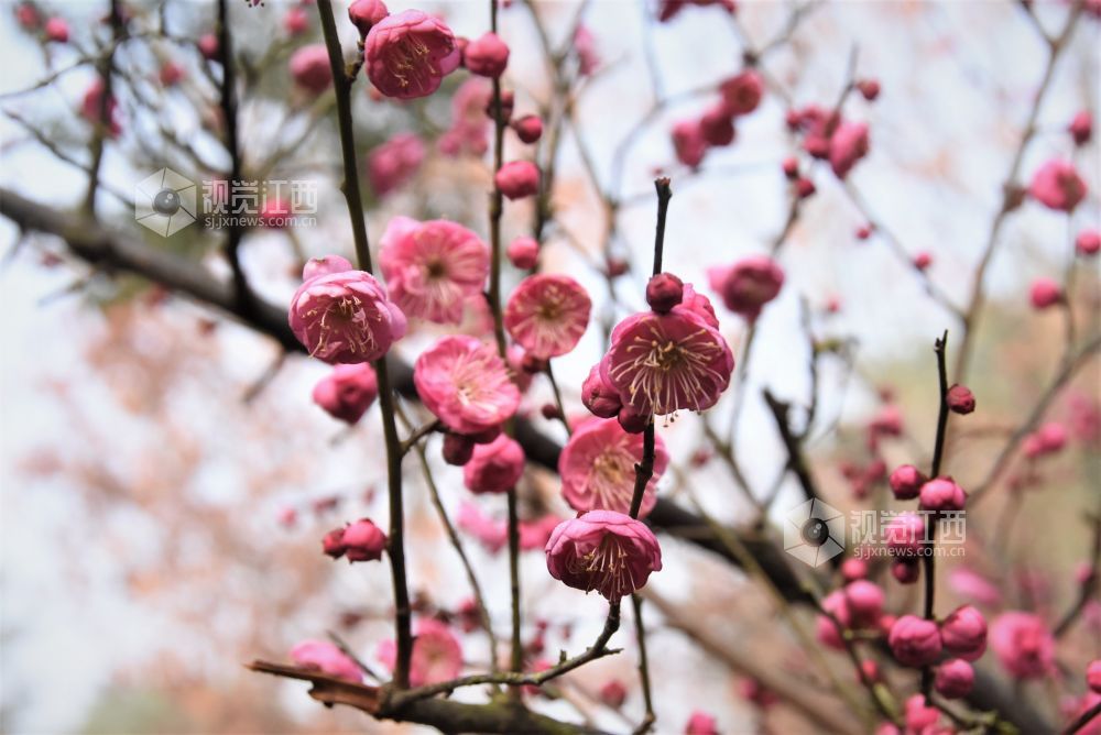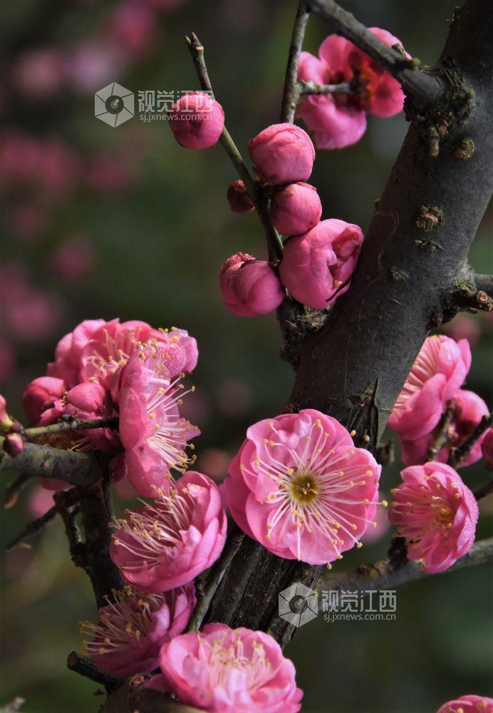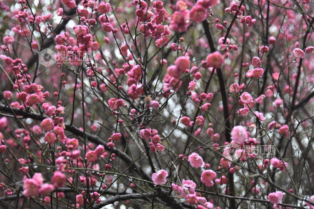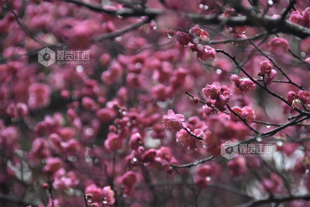 2022年1月23日,江西省鄱阳县城寒冬中的腊梅迎着风雨绽放格外艳丽,成为ー道亮丽的“梅”景。