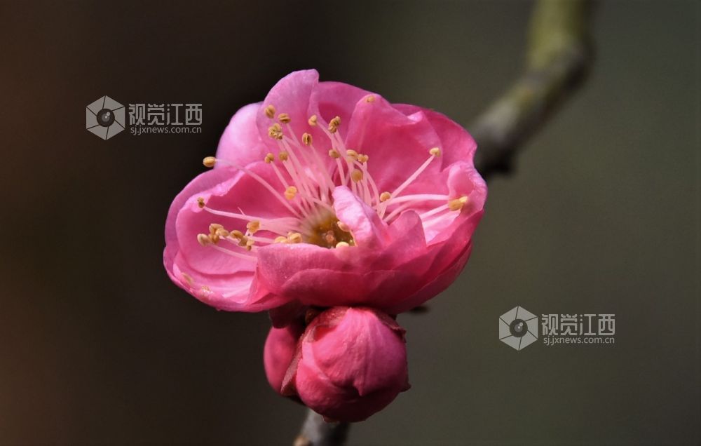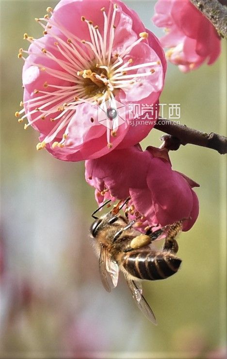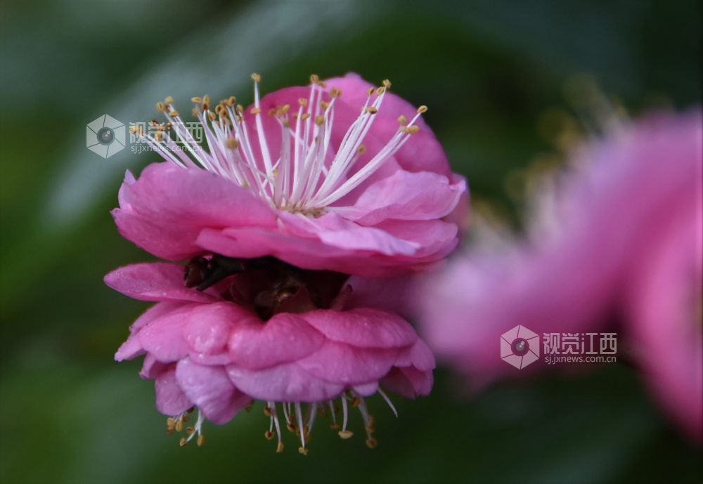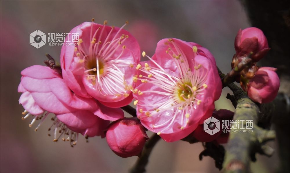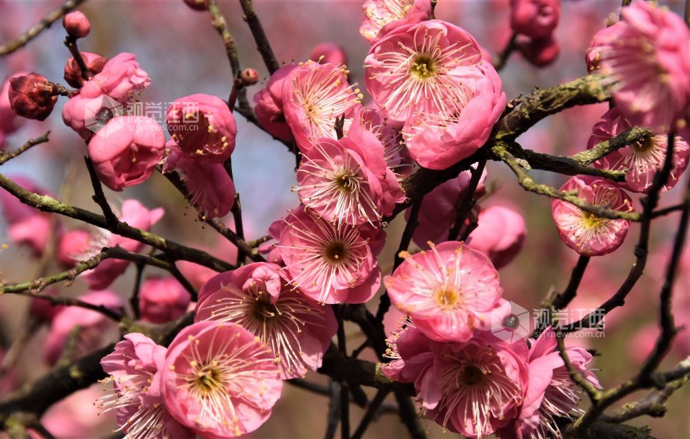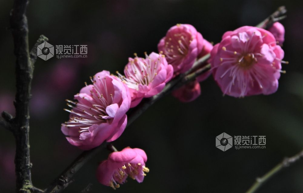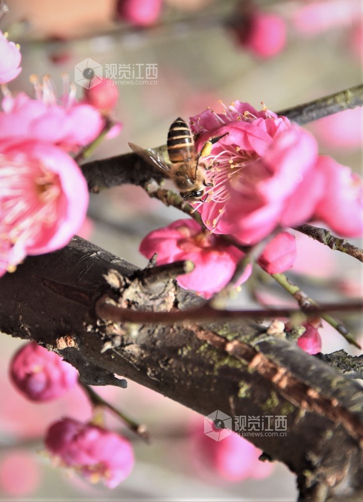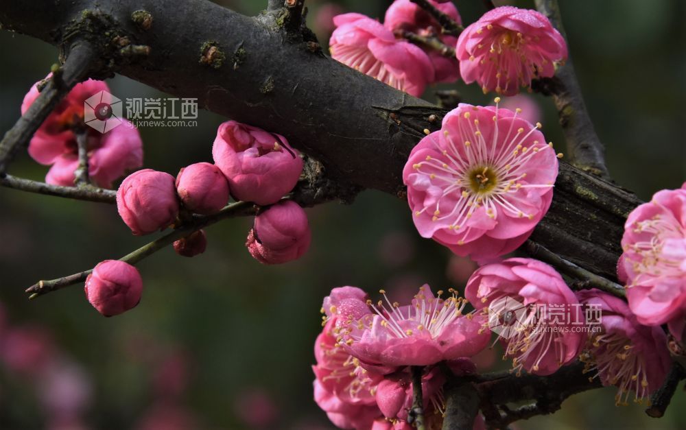 2022年1月23日,江西省鄱阳县城寒冬中的腊梅迎着风雨绽放格外艳丽,成为ー道亮丽的“梅”景。