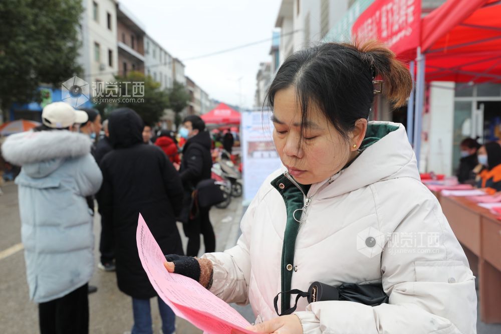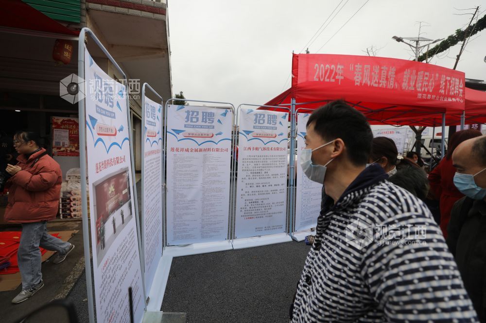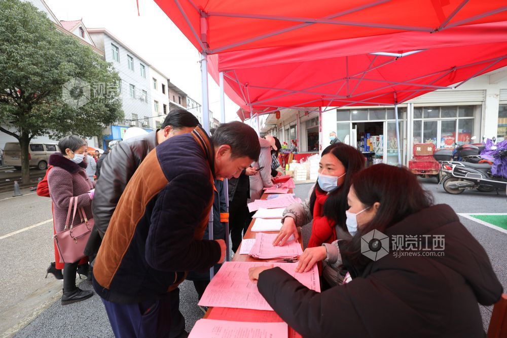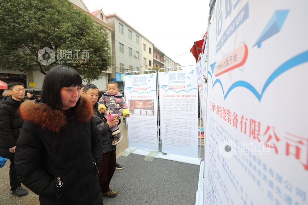 1月28日,江西省莲花县湖上乡墟场,该县就业创业服务中心的工作人员在这里“搭台”,展出招聘信息,并向前来赶场的群众发放企业招工信息宣传单。